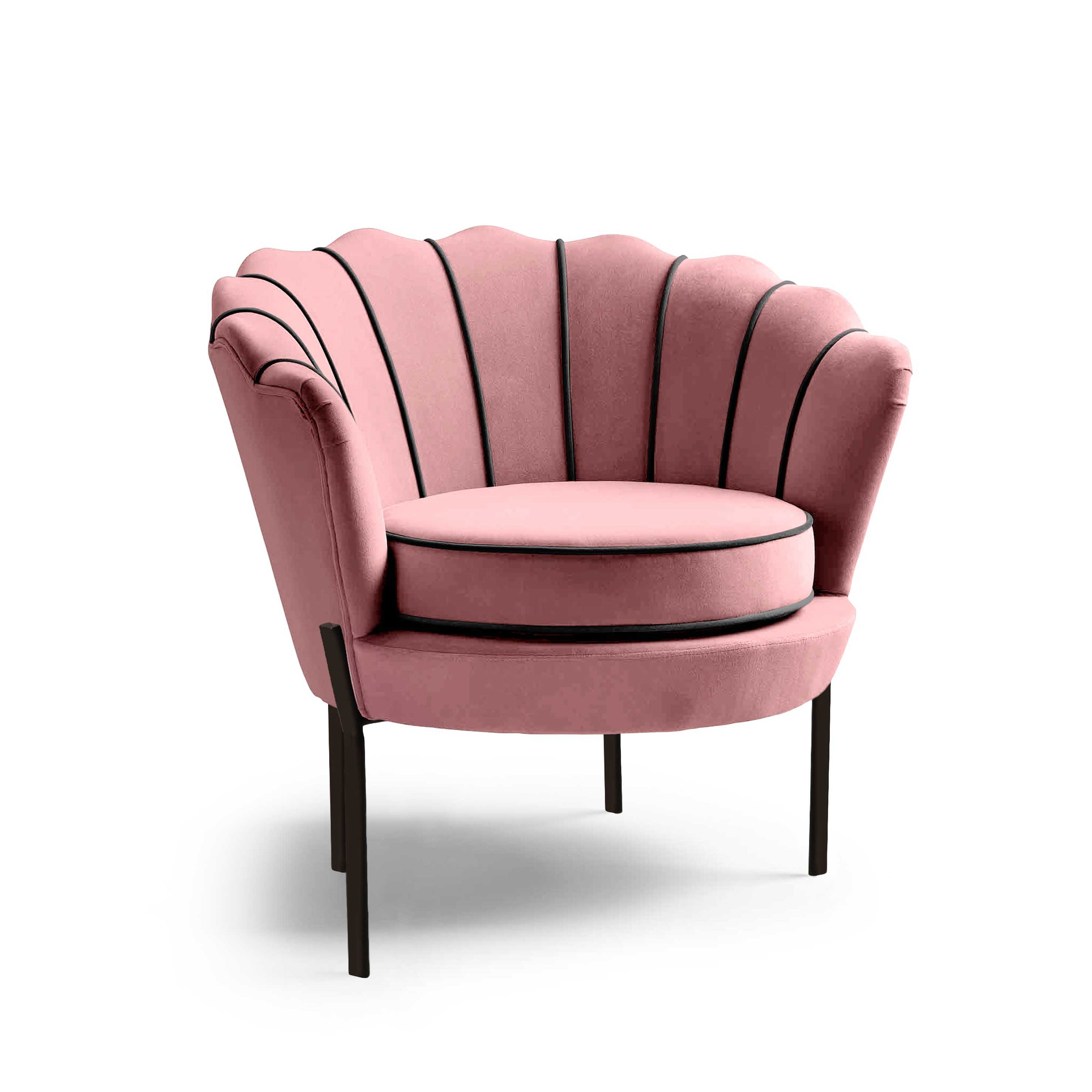 Nowoczesny Fotel Wypoczynkowy ANGELO, Tapicerowany Tkaniną Velvet, Różowy, Czarny