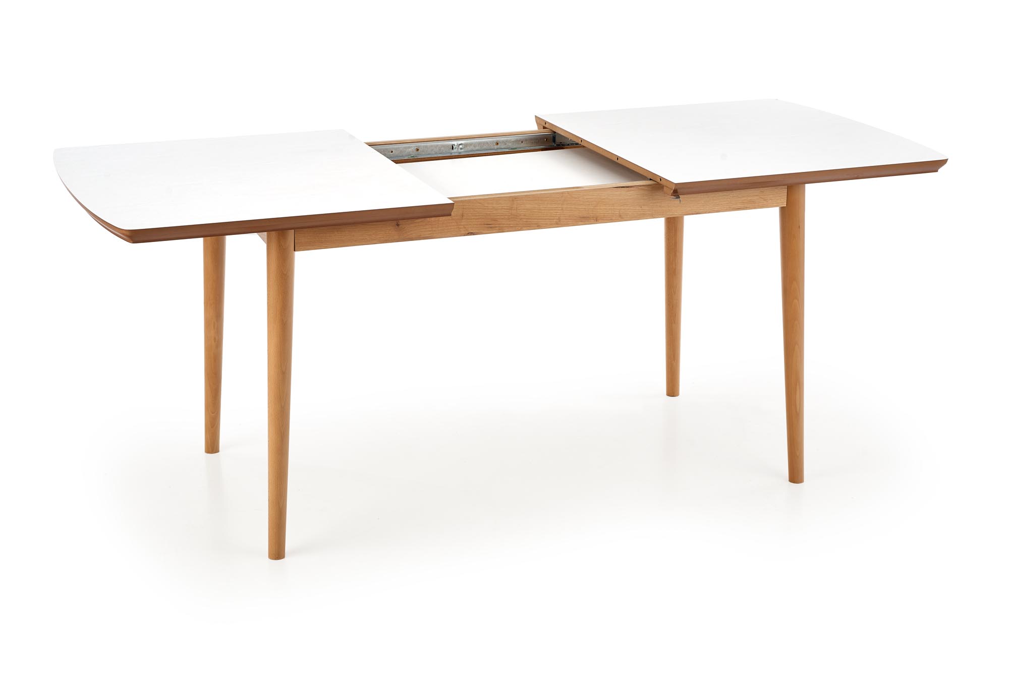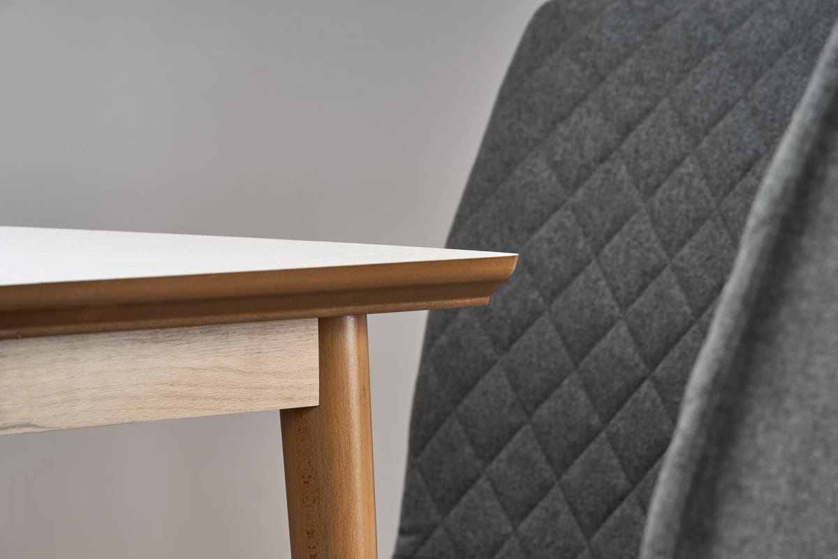 ARRET to solidny, nowoczesny i stylowy stół, który doskonale pasuje do każdego wnętrza. Wykonany z litego drewna bukowego i okleinowanego MDF-u, zapewnia trwałość i piękne wykończenie. Jego prostokątny kształt i rozkładana konstrukcja sprawiają, że jest idealnym wyborem zarówno dla 4, jak i 8 osób.