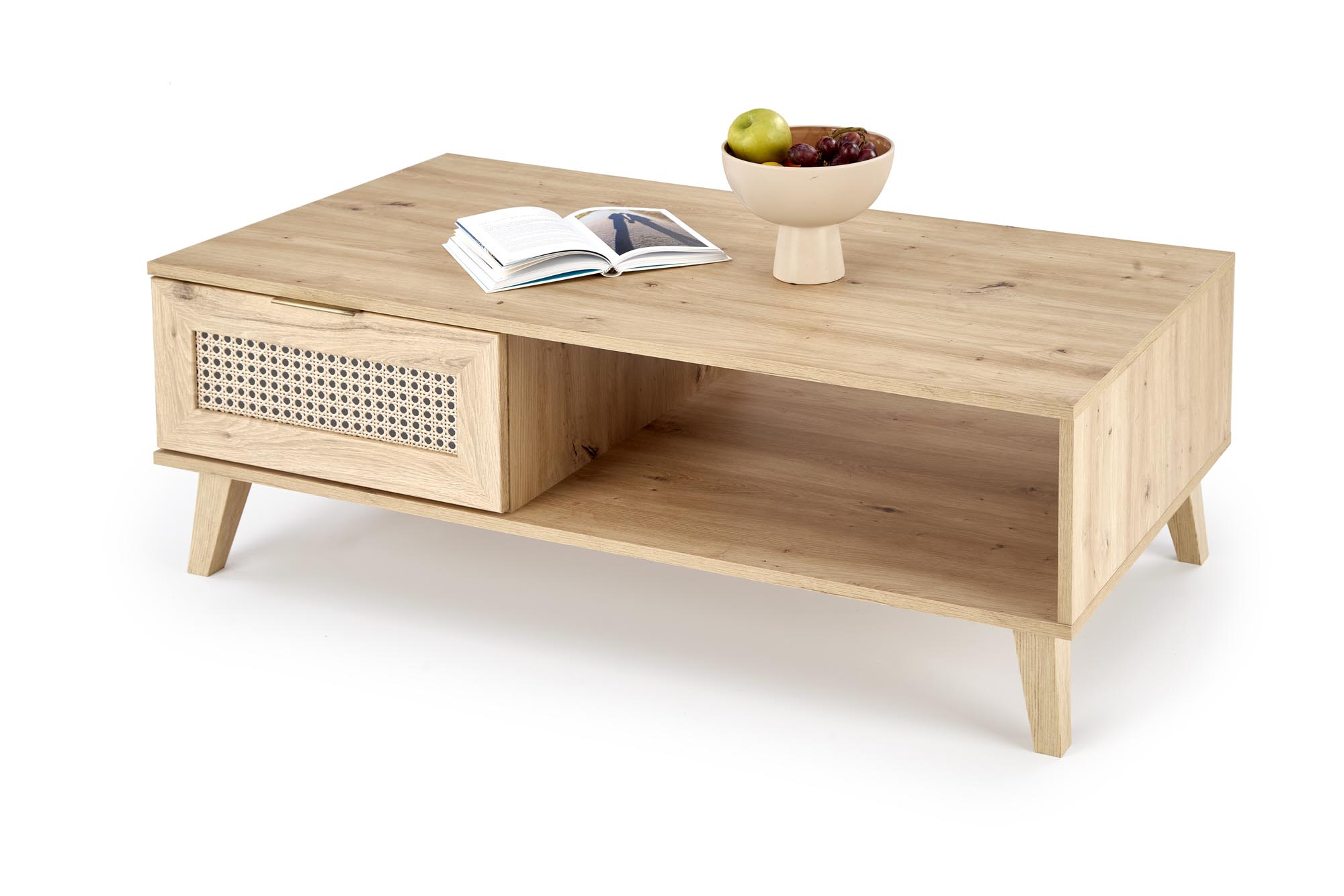 BADIA LAW-1 ława dąb artisan/czarny z szufladą, na nóżkach, boho