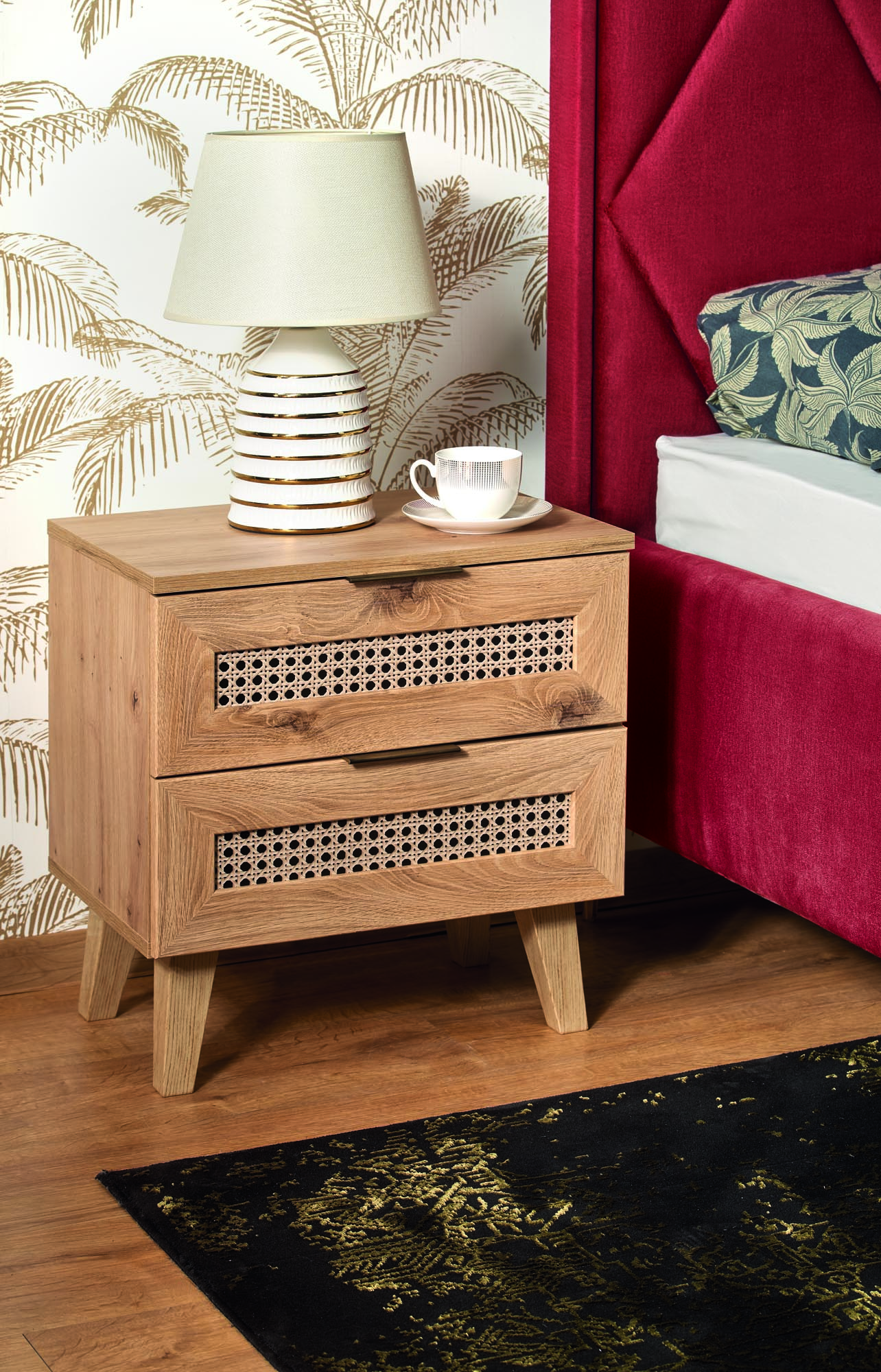 BADIA SN-1 szafka nocna dąb artisan/czarny na nóżkach, szuflady