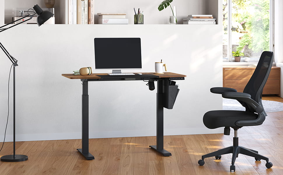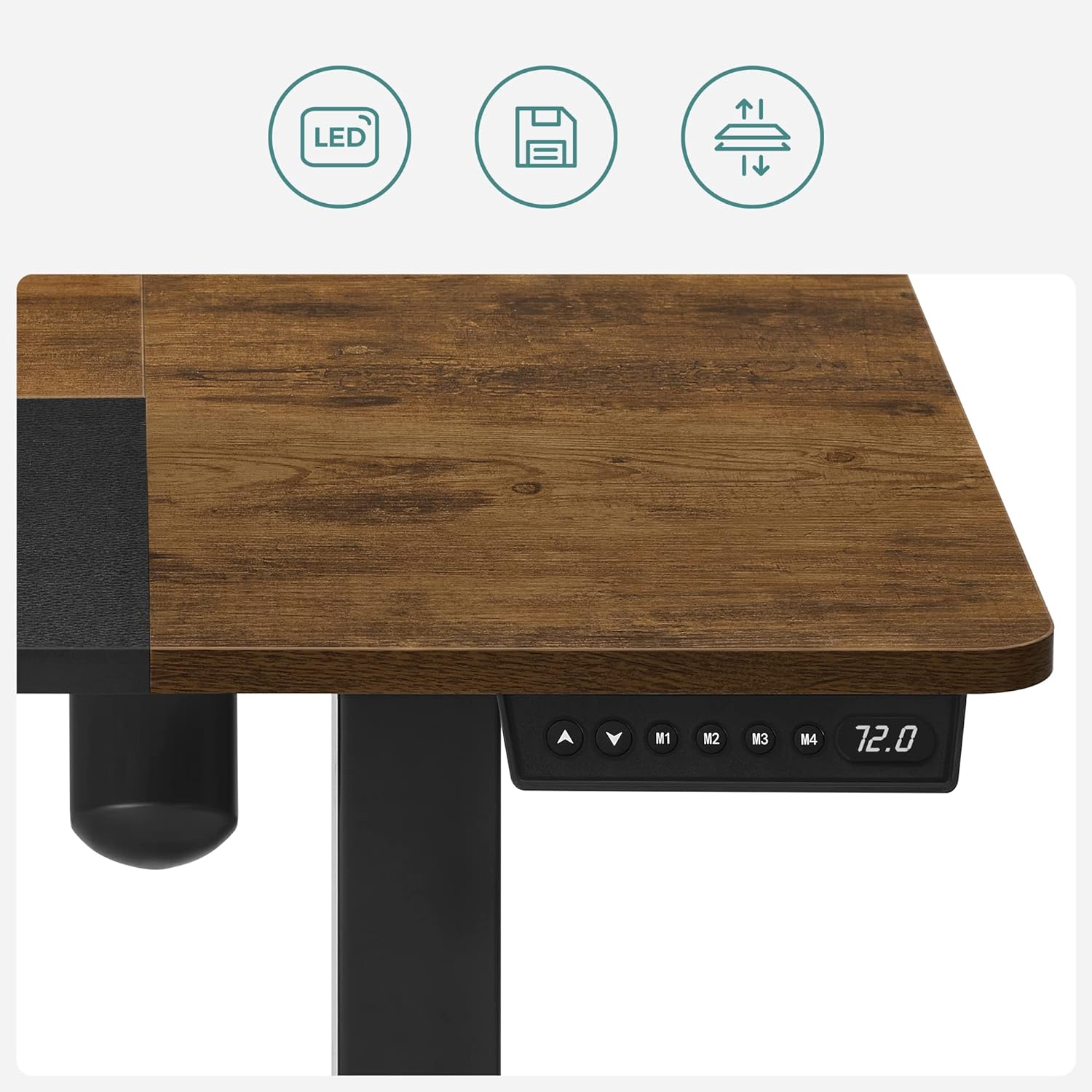 Elektryczne biurko wykonane w stylu rustykalnym, czyli odpowiednio stylizowanym na wiekowe. Biurko jest stabilne, a więc możemy umieścić na nim komputer, monitor, zestaw głośników czy też laptop, lampkę biurkową, książki i zeszyty. Do biurka dołączono 2 haki i boczną kieszeń, abyś miał pod ręką wszystko co potrzebne.