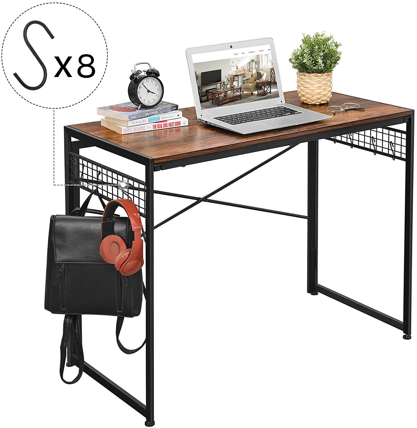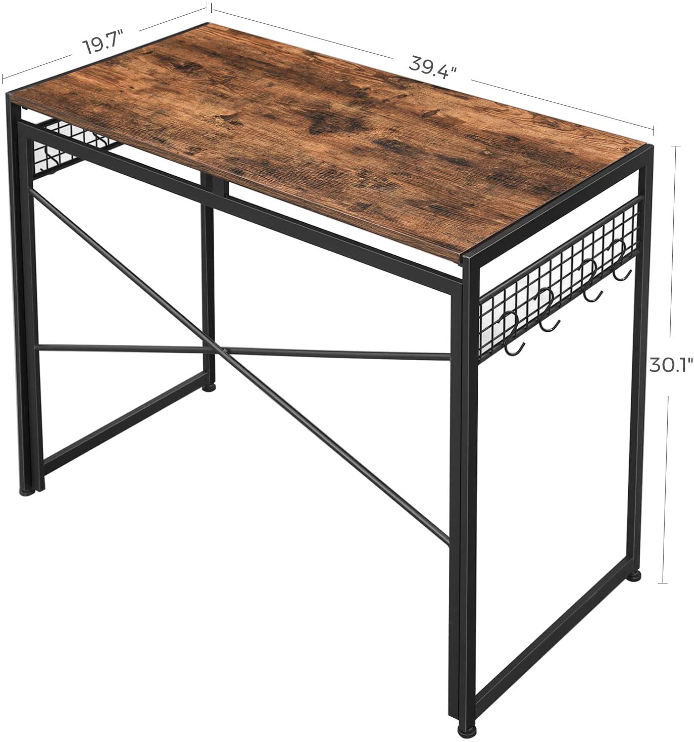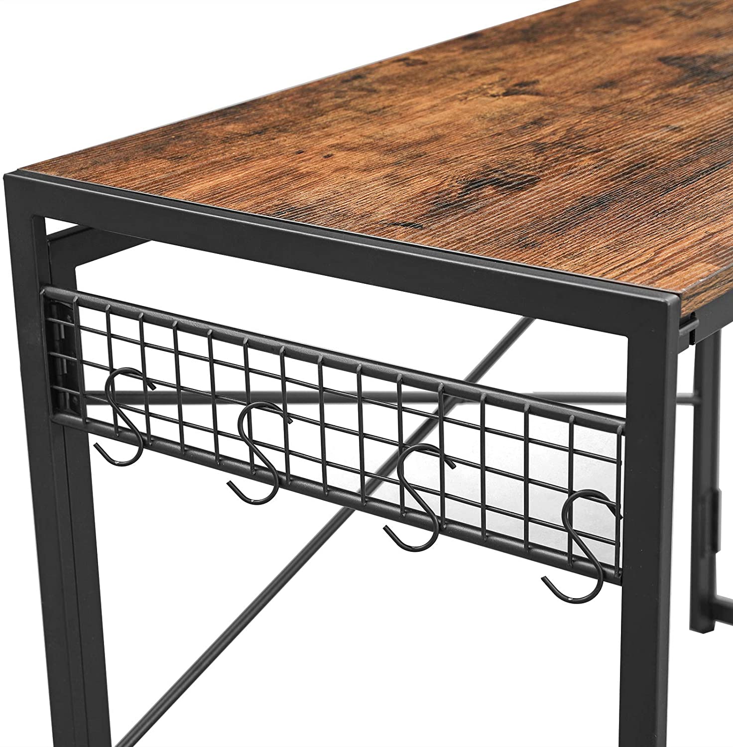 Biurko wykonane w stylu rustykalnym, czyli odpowiednio stylizowanym na wiekowe. Biurko jest stabilne, a więc możemy umieścić na nim komputer, monitor, zestaw głośników czy też laptop, drukarkę, lampkę biurkową, książki i zeszyty. Do biurka dołączono 8 haków, abyś miał pod ręką wszystko co potrzebne.