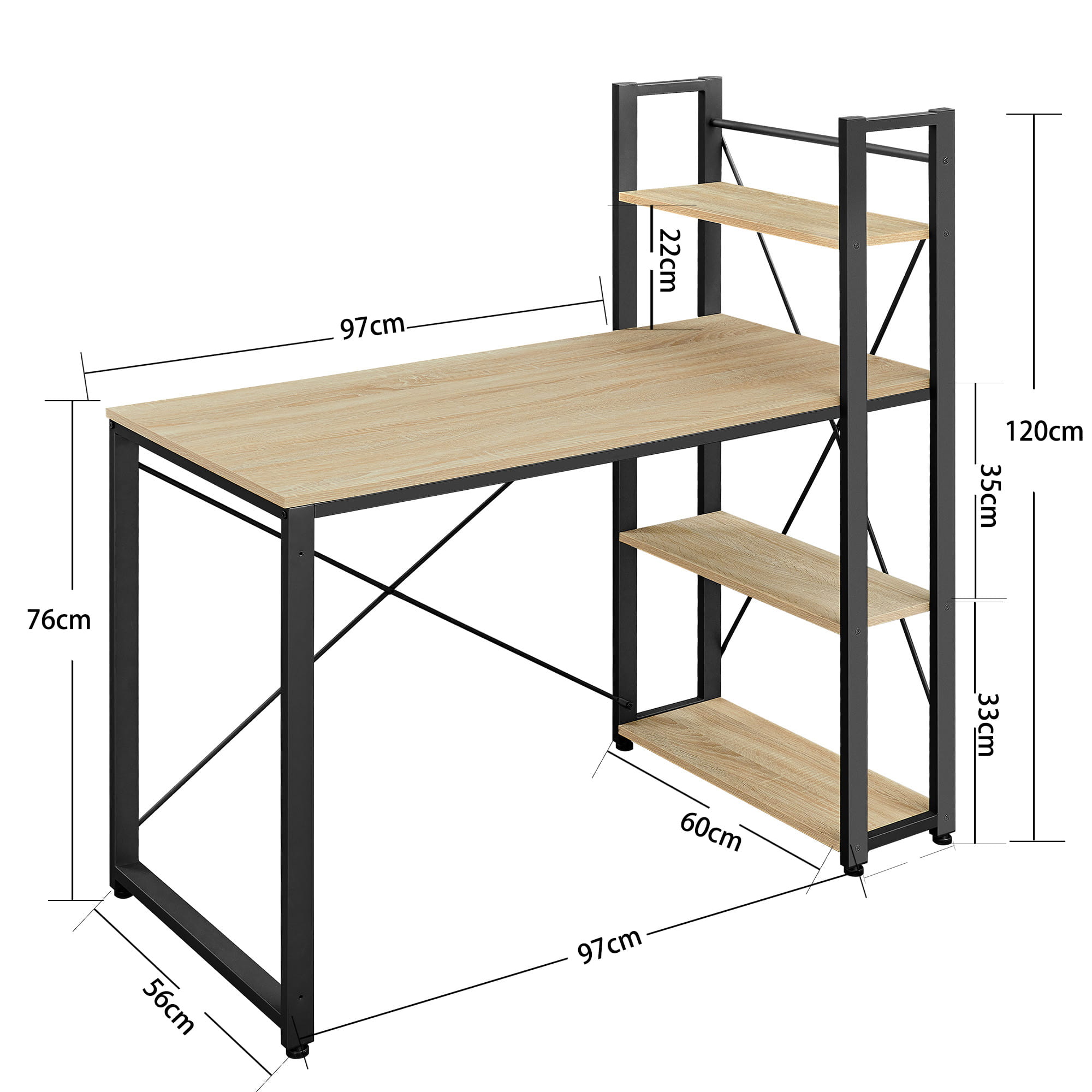 Biurko Komputerowe z półkami bocznymi- sonoma - LWD048B11