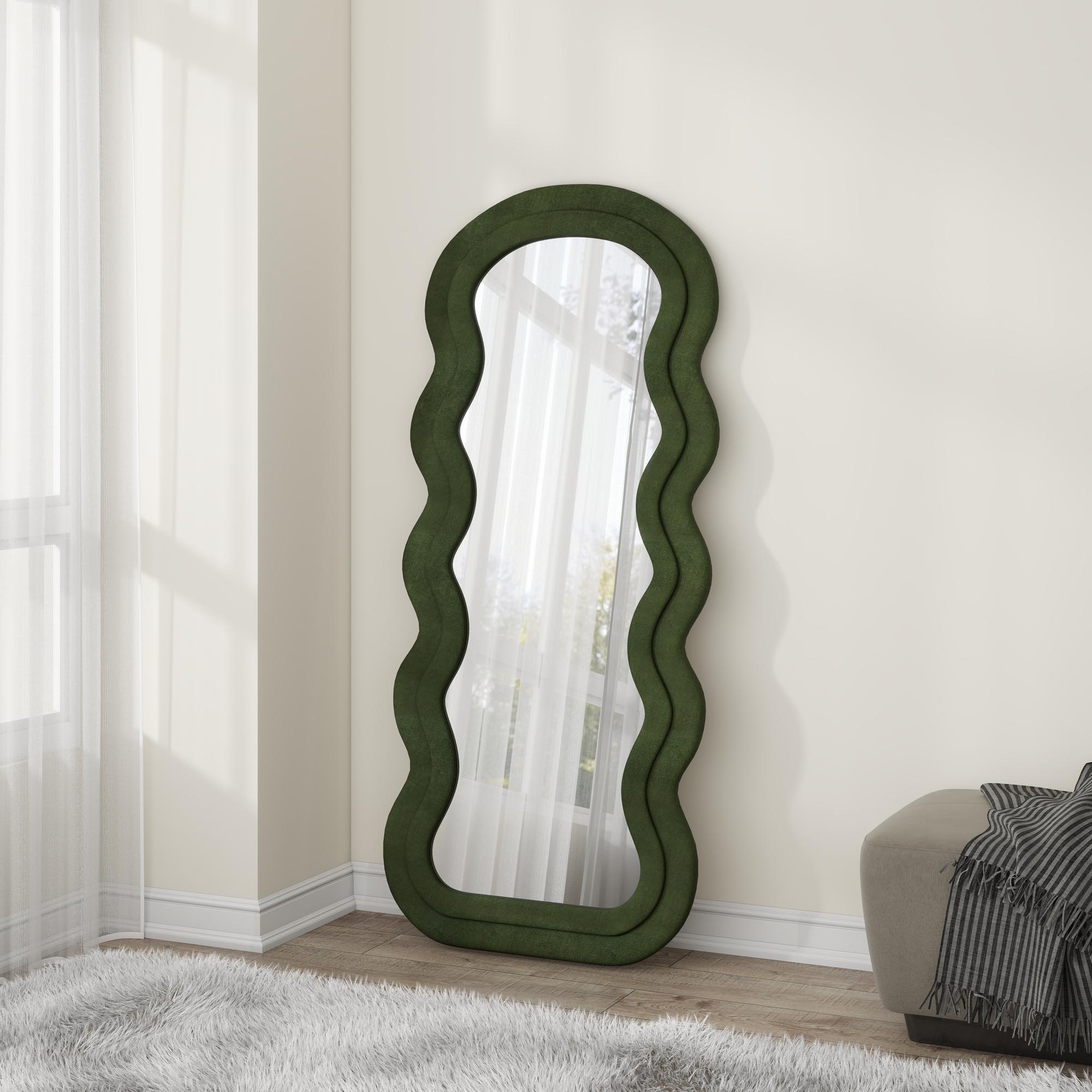 CONFETTO lustro stojące lub ścienne wiszące, oliwkowy welur 160/70/3 cm