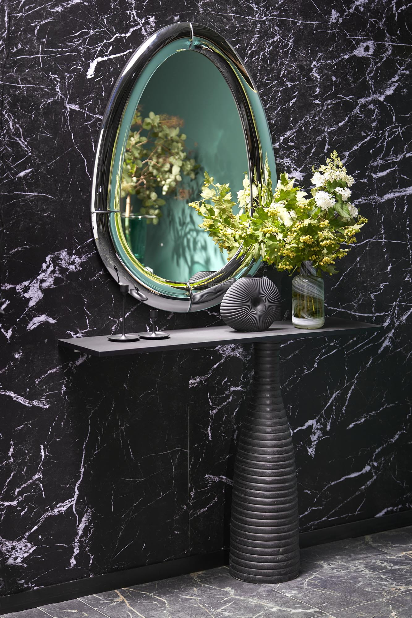 Nowoczesne lustro ścienne to idealne rozwiązanie do salonu, sypialni, przedpokoju czy łazienki. Jego elegancka, fazowana rama ze szkła giętego podkreśla luksusowy charakter wnętrza, a solidny podkład MDF zapewnia trwałość