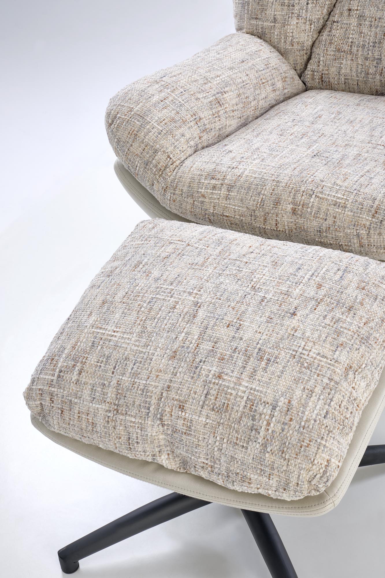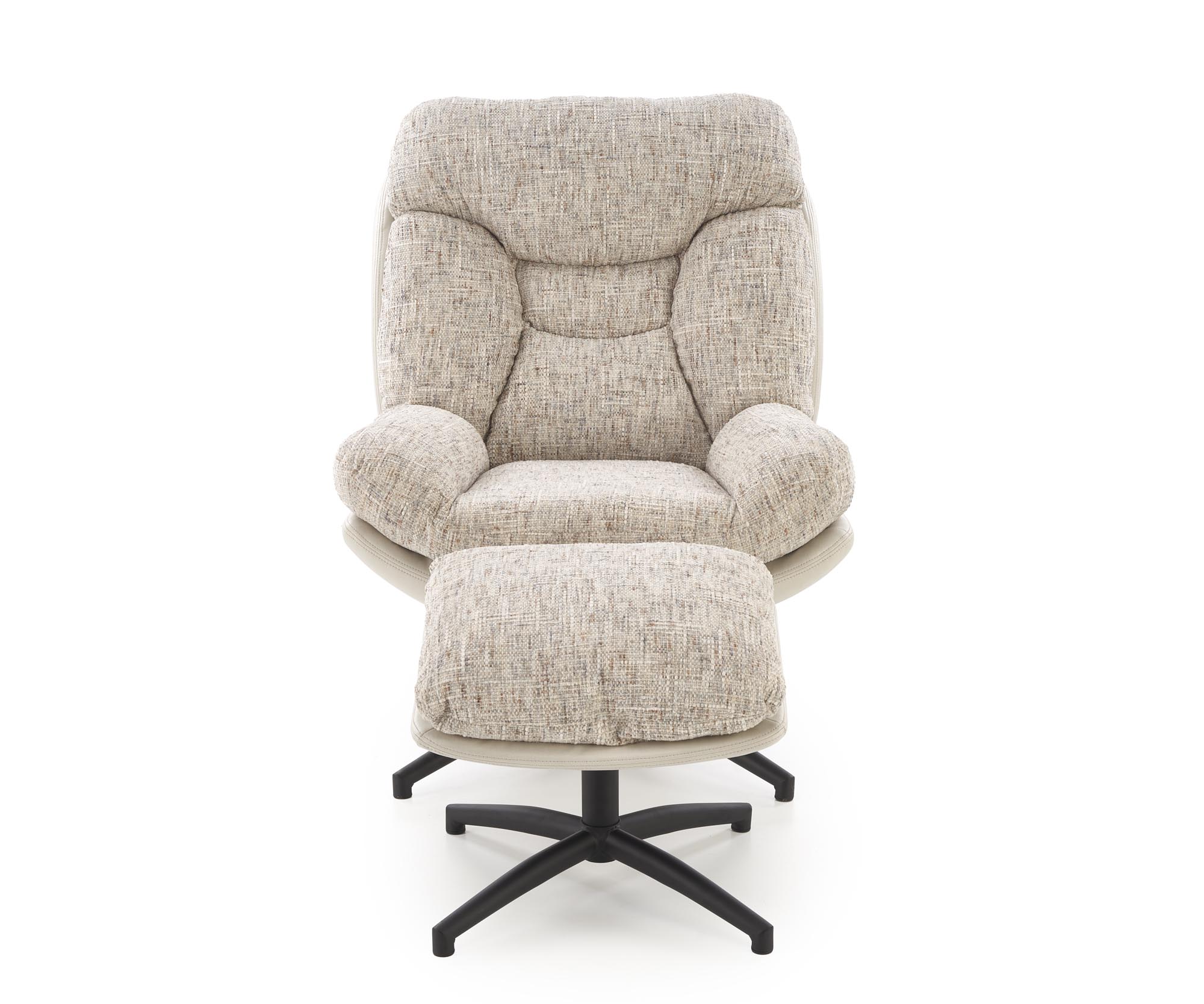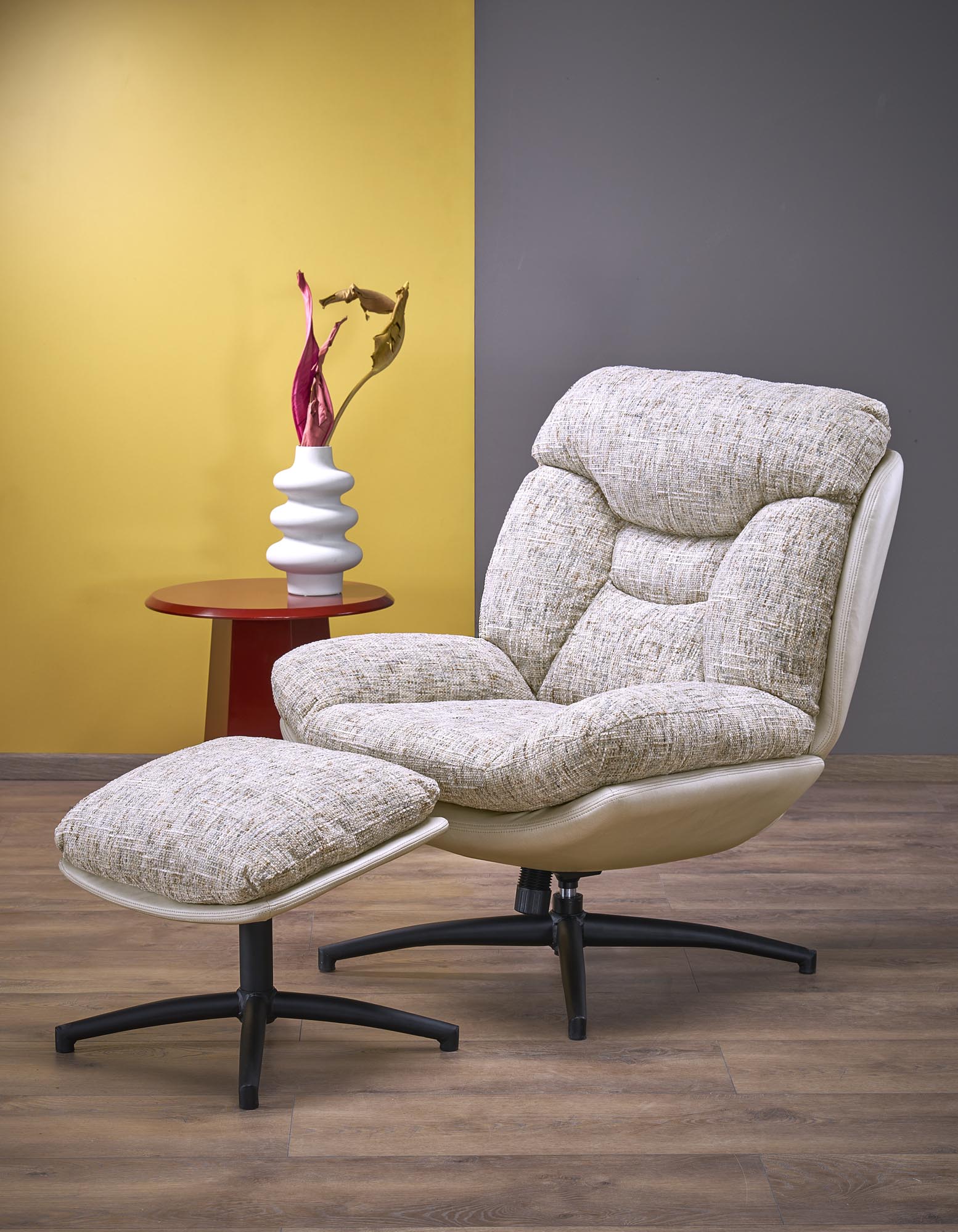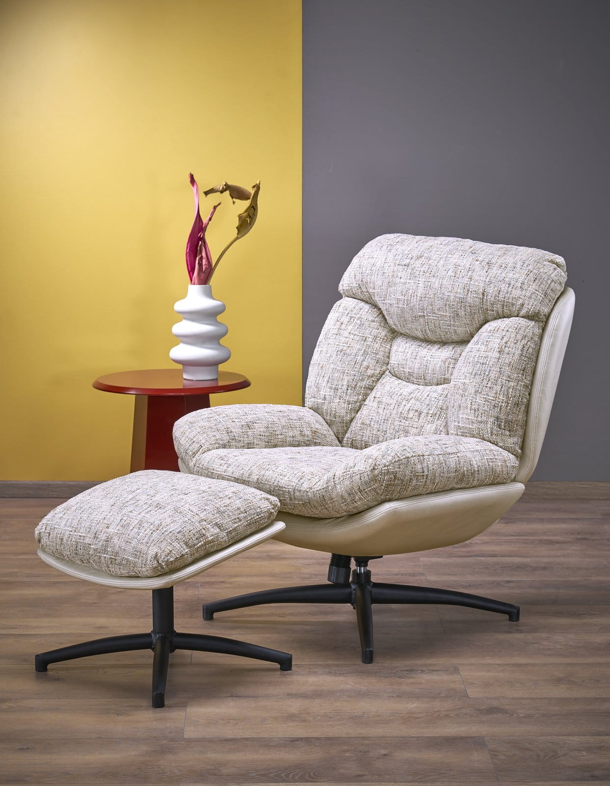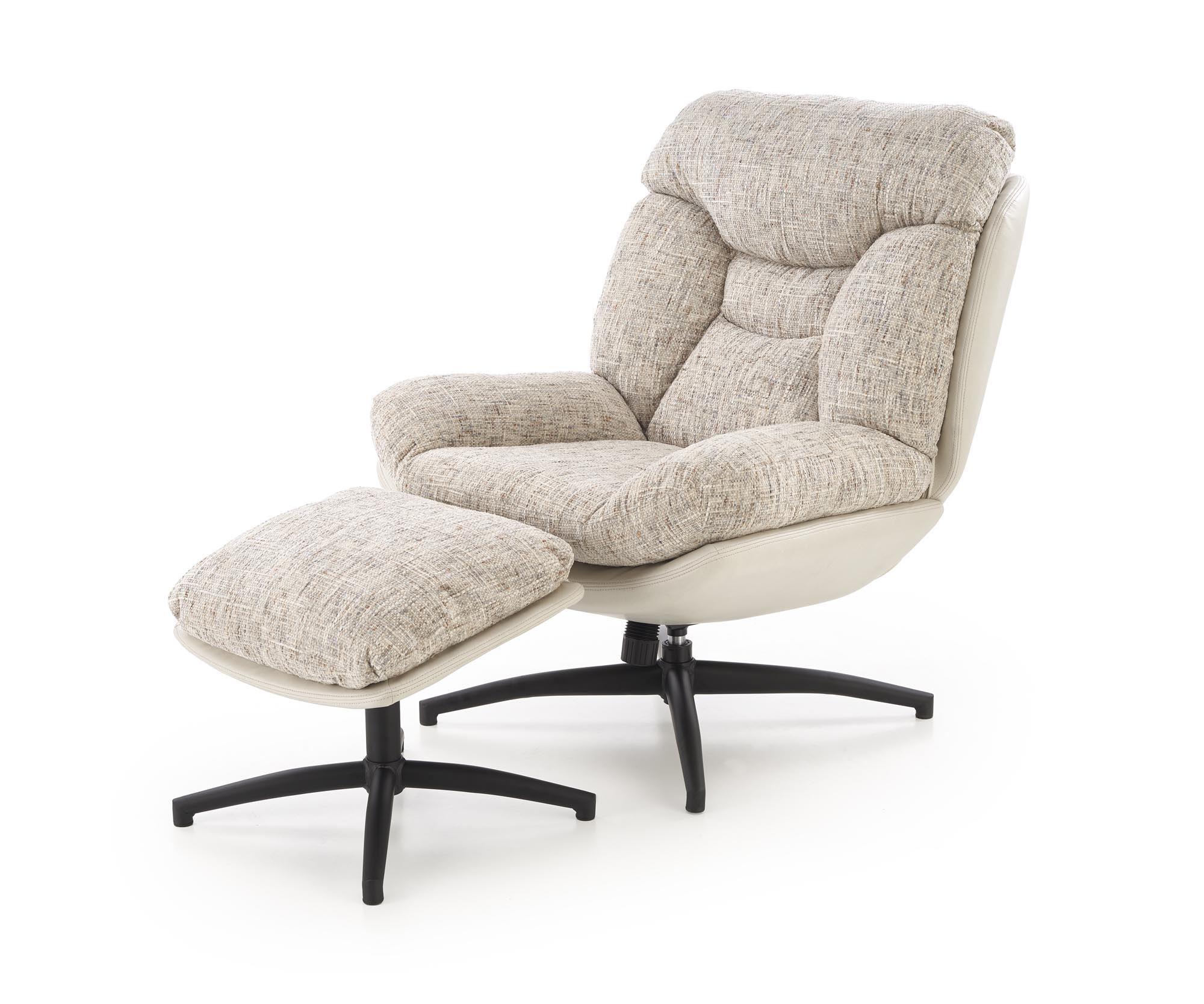 KRONOS fotel z podnóżkiem, beżowy melanż nowoczesny eco skóra kołyska