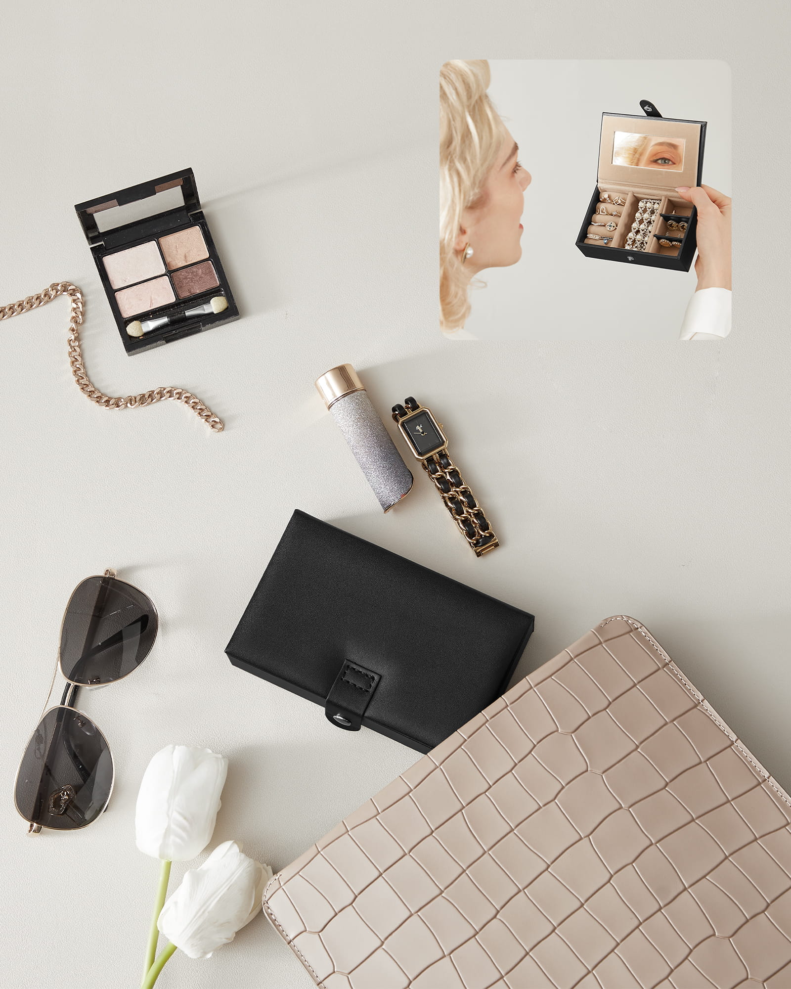 - praktycznego lusterka umieszczonego na górnej pokrywie szkatułki.