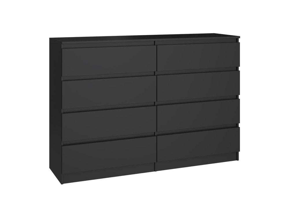 Komoda Malwa M8/140 CZARNY 8 szuflad, bezuchwytowe, 140 cm, duża