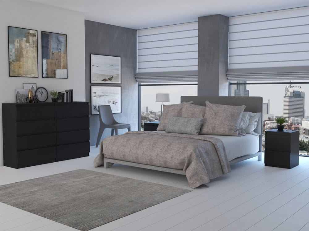 NOWOCZESNA DUŻA KOMODA NA 8 SZUFLAD SERIA: MALWA MODEL: M8 140 KOLOR: CZERŃ Nowoczesna komoda z kolekcji MALWA to funkcjonalny i pakowny mebel, który urządzi wnętrze Twojej sypialni, salonu lub pokoju dziecka.