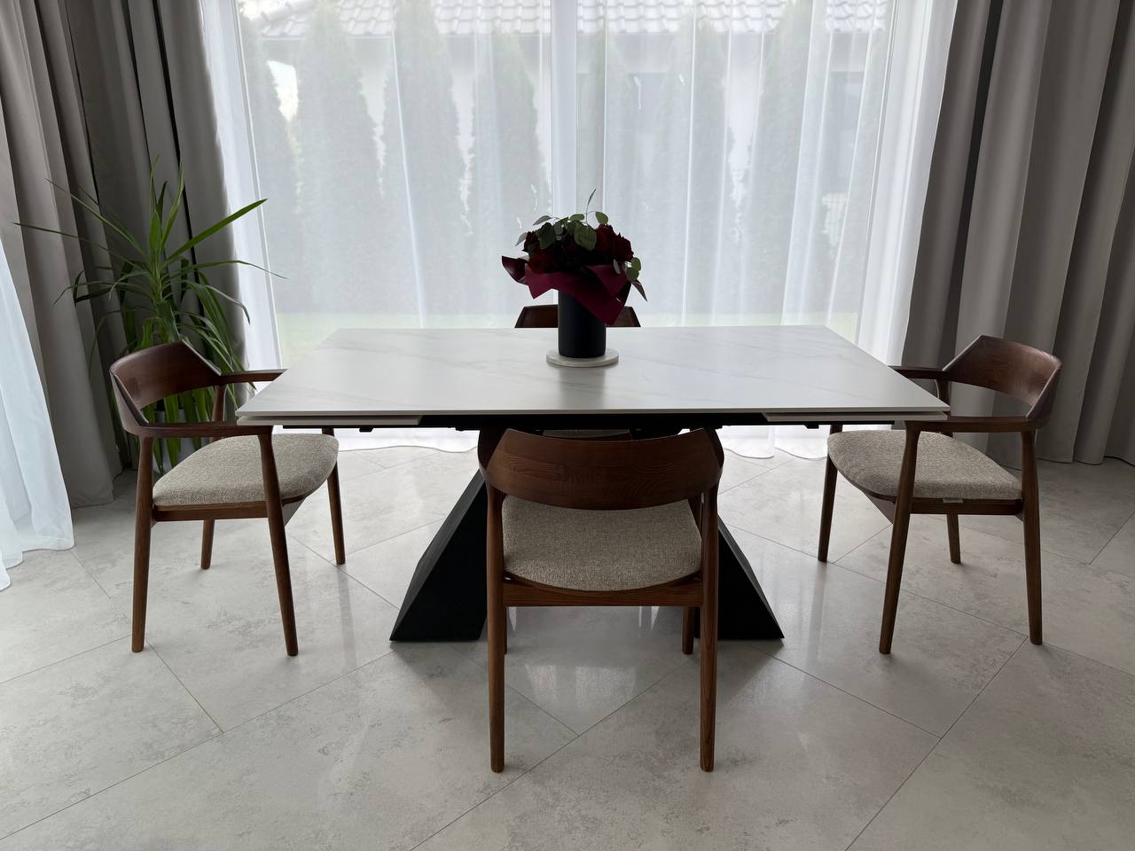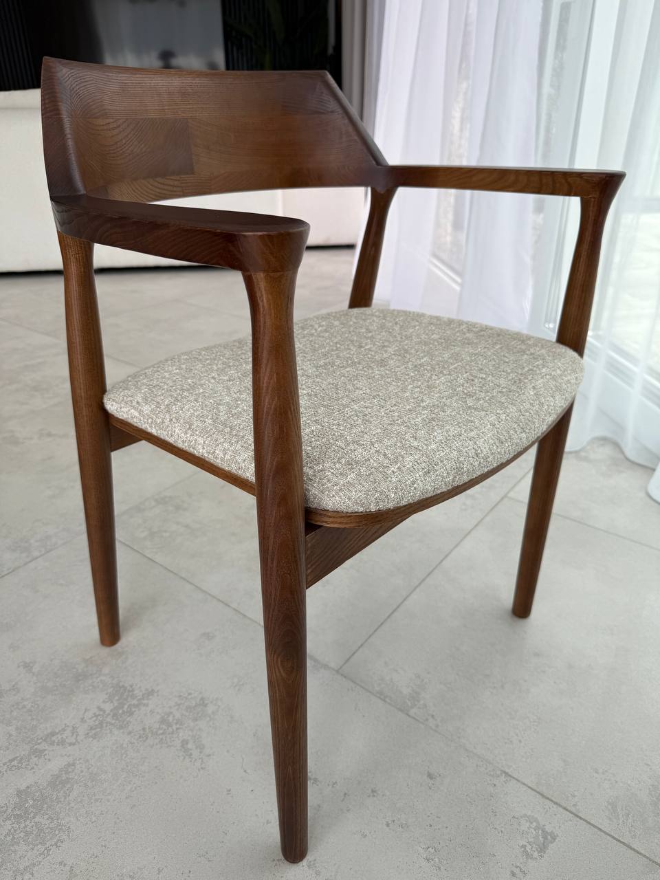 Oferujemy kompletny zestaw czterech eleganckich krzeseł drewnianych z tapicerowanym siedziskiem o nazwie QUEST. Każde krzesło charakteryzuje się starannie przemyślaną konstrukcją, zapewniającą zarówno trwałość, jak i wygodę użytkowania. Dzięki swoim wymiarom doskonale sprawdzą się w różnych aranżacjach wnętrz, zarówno nowoczesnych, jak i klasycznych. Tapicerowane siedzisko dodaje im elegancji oraz komfortu, co czyni je idealnym wyborem do jadalni, salonu czy biura. Wybierz jakość i styl, które z pewnością ożywią Twoje wnętrze.