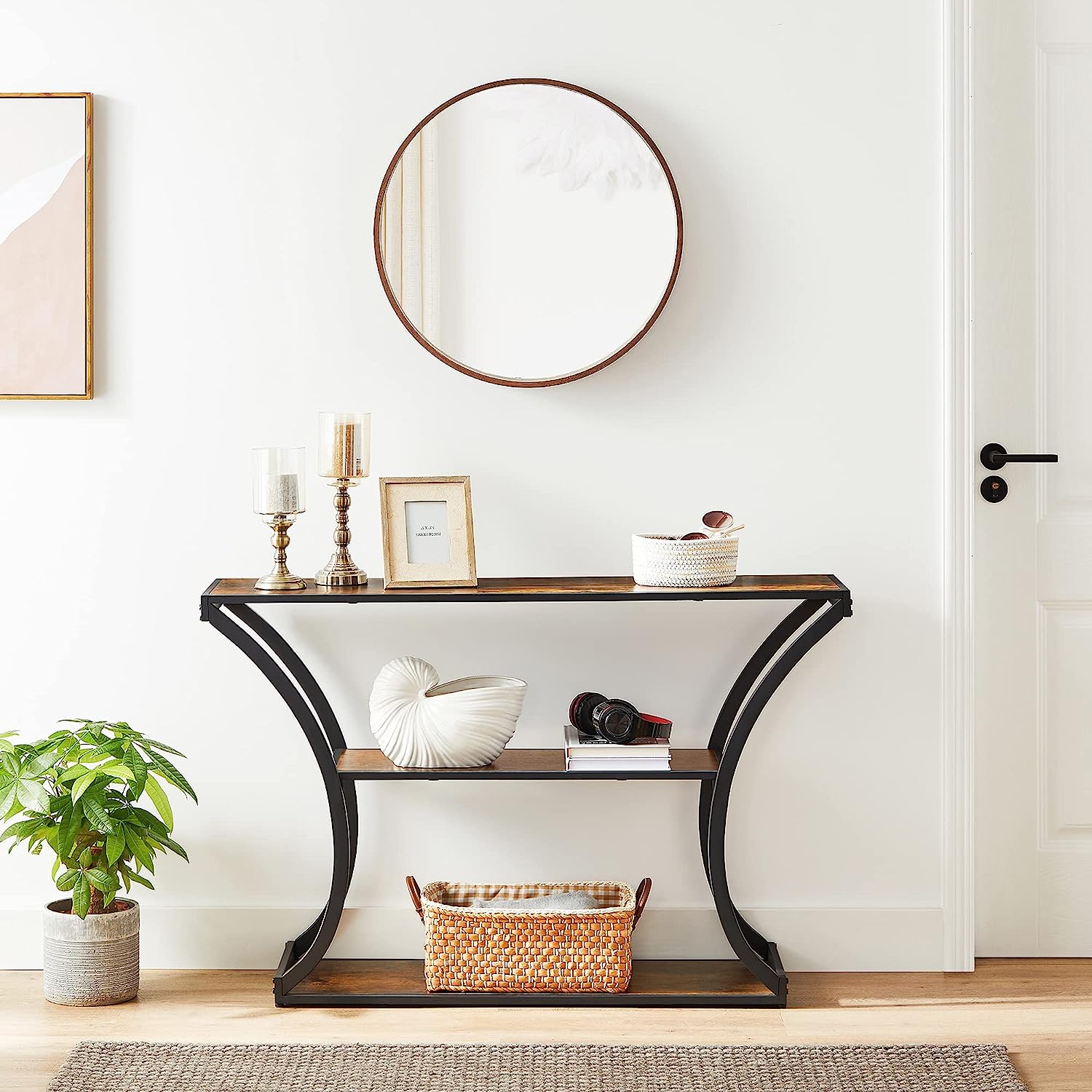 Idealnie spasowane elementy ramy oraz rustykalna oprawa blatu i półek nadadzą Twojemu wnętrzu wdzięku. Zadbaj o estetykę swojego przedpokoju, salonu czy pokoju wybierając produkty sprawdzone, o najwyższej jakości wykonania.