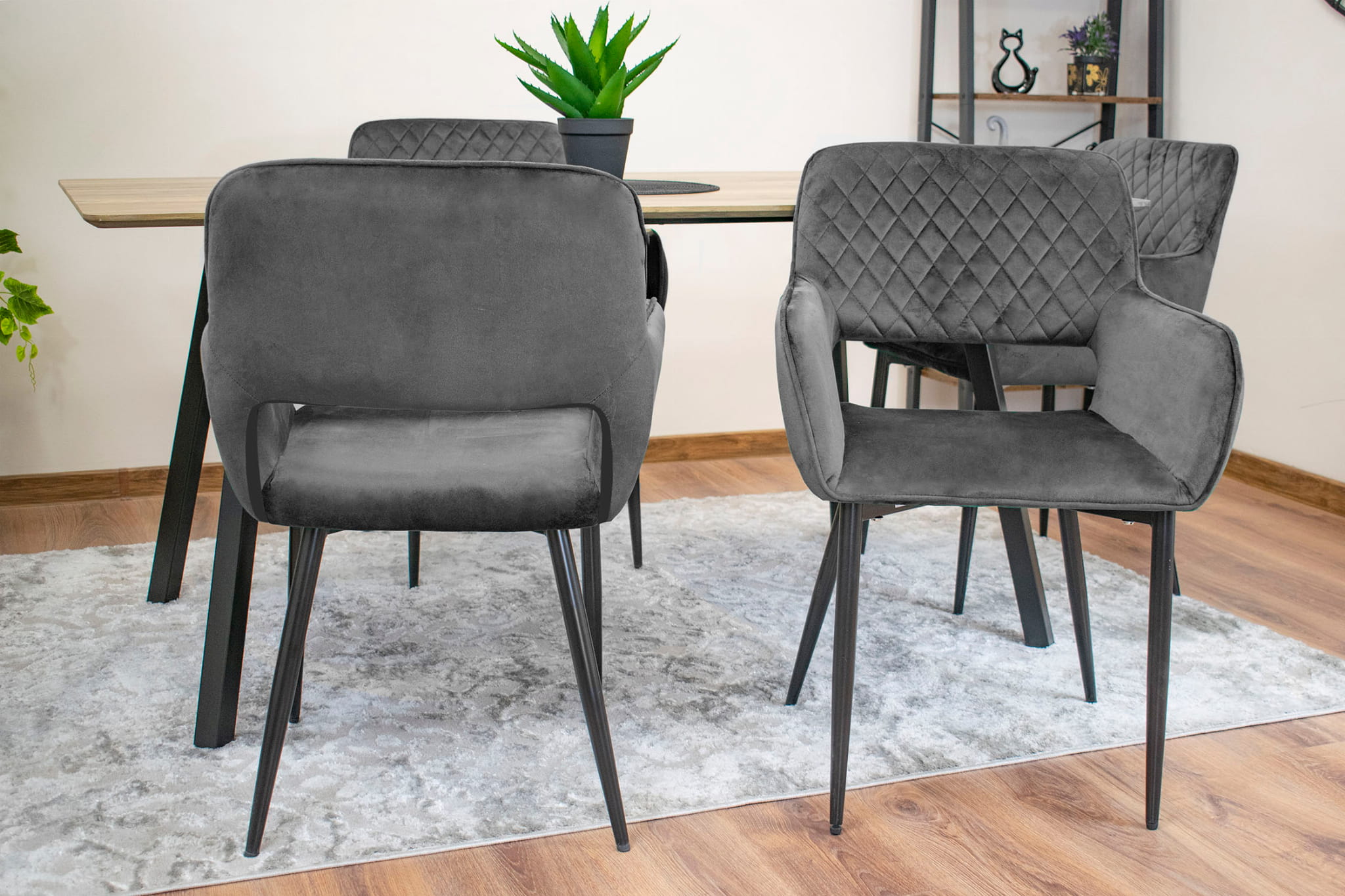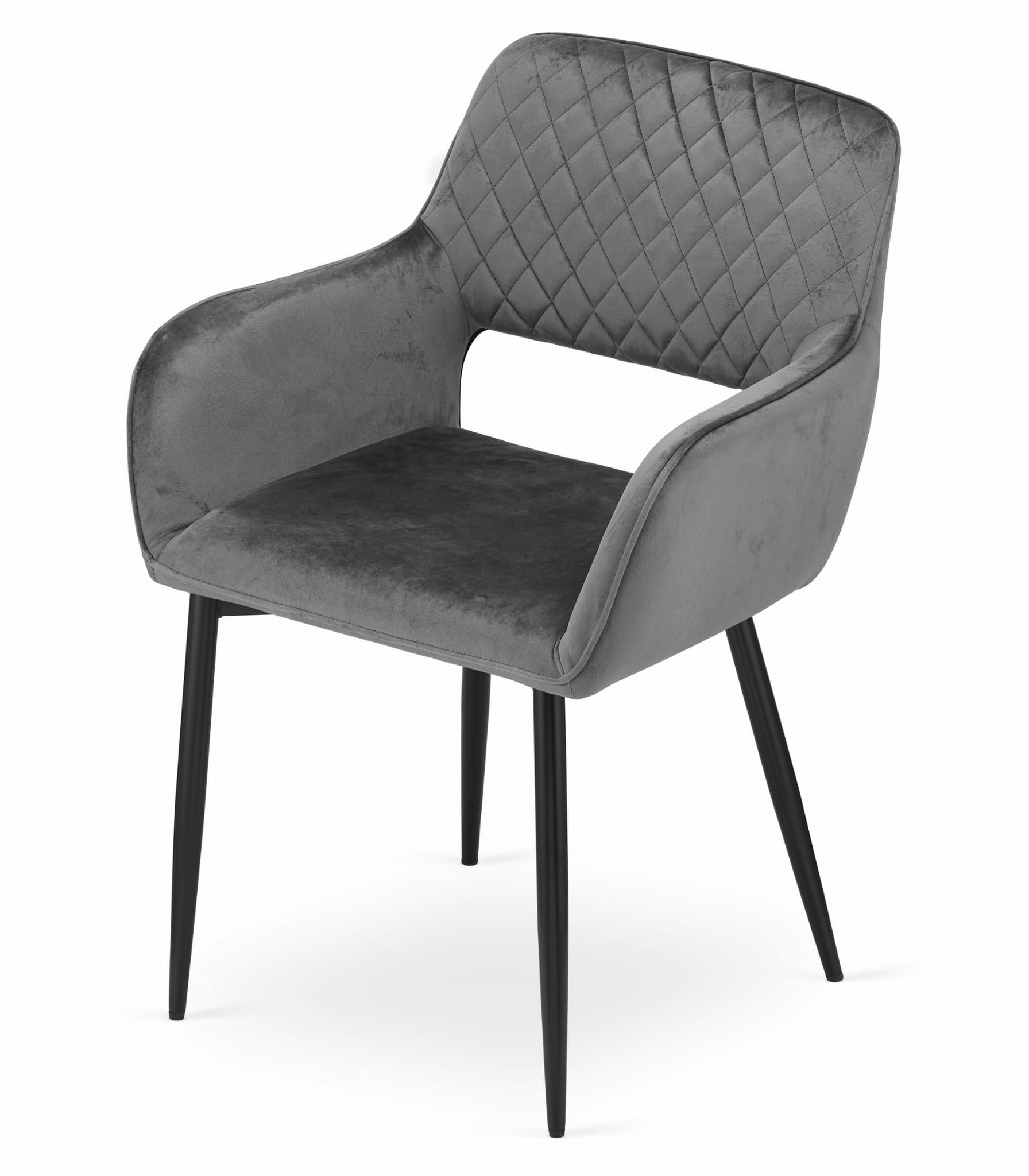 Krzesło AMALFI - ciemny szary aksamit x 1, z podłokietnikami, z dziurą
