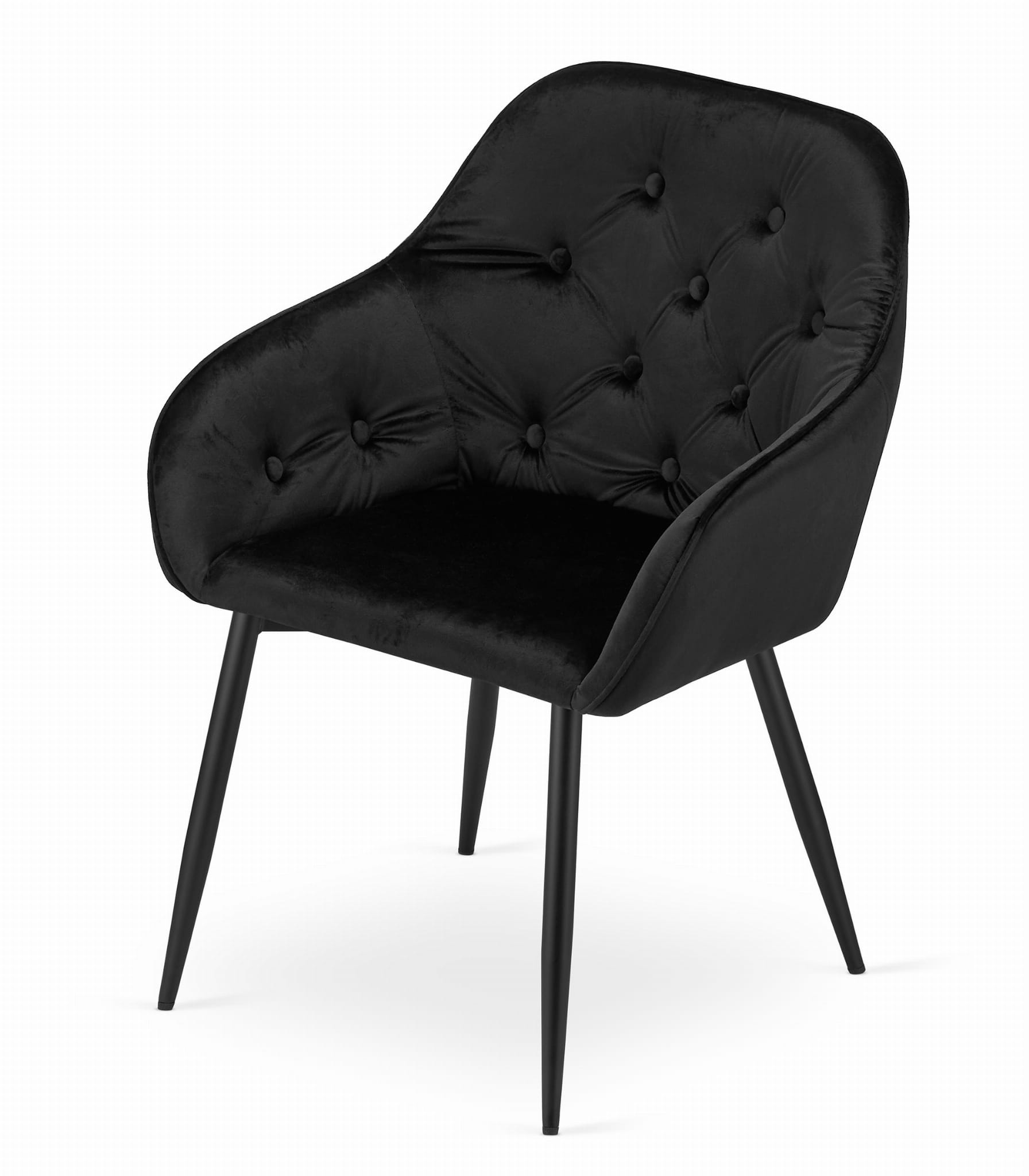 Krzesło FORIO - czarny aksamit / nogi czarne x 1, z podłokietnikami