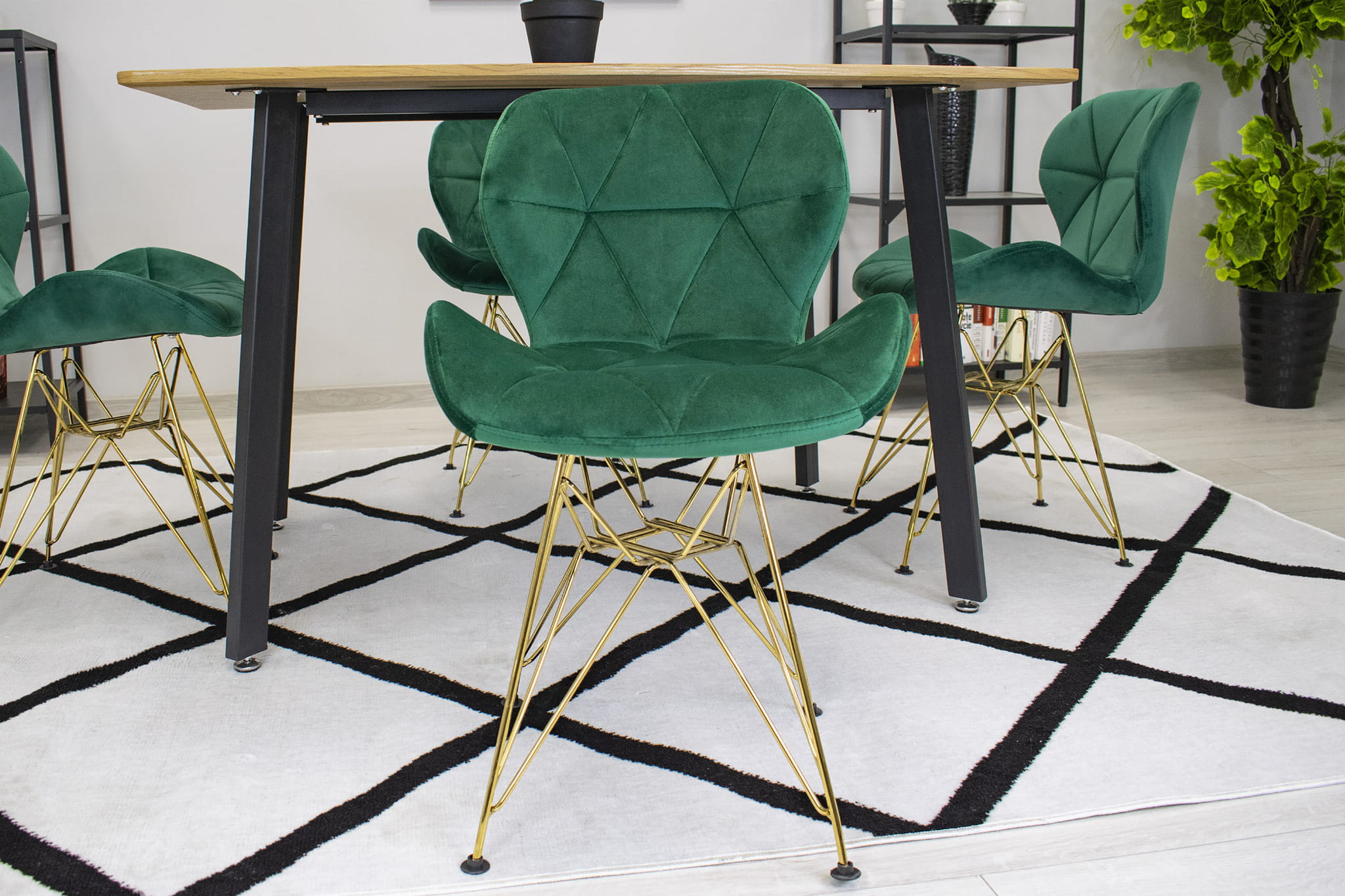 - krzesło dostępne jest w kolorze ZIELONYM z nogami w kolorze ZŁOTYM