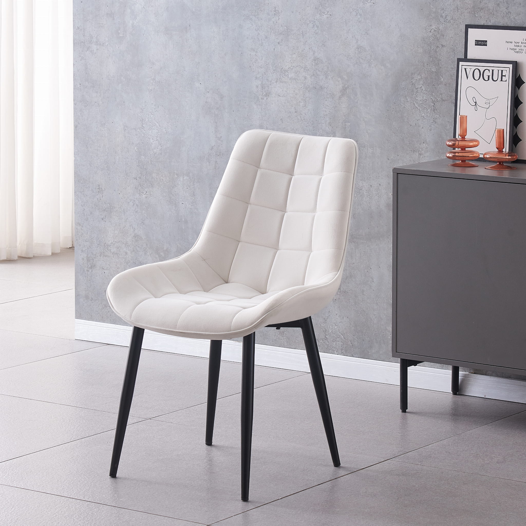 Krzesło Tapicerowane Ecru Welur Pikowane MALMO