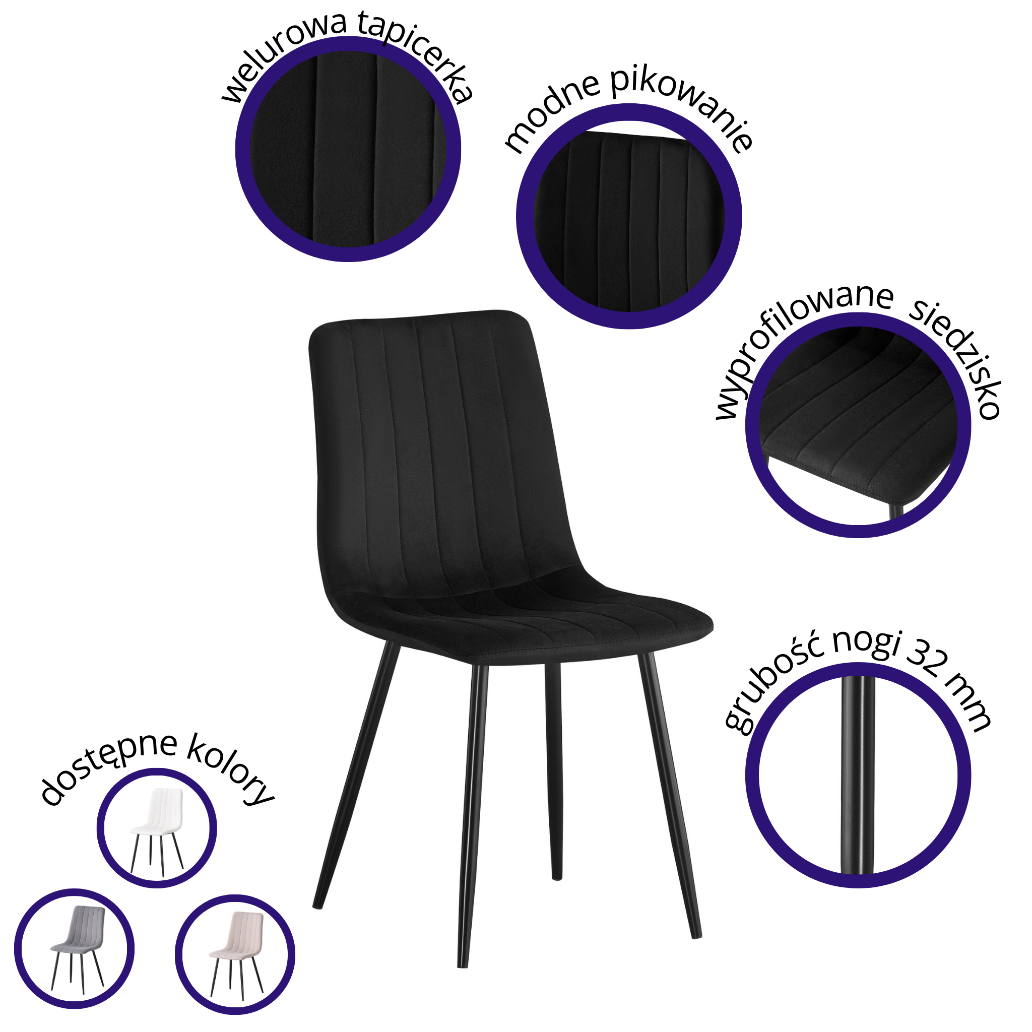 Krzesło tapicerowane do jadalni welurowe czarne IRIS