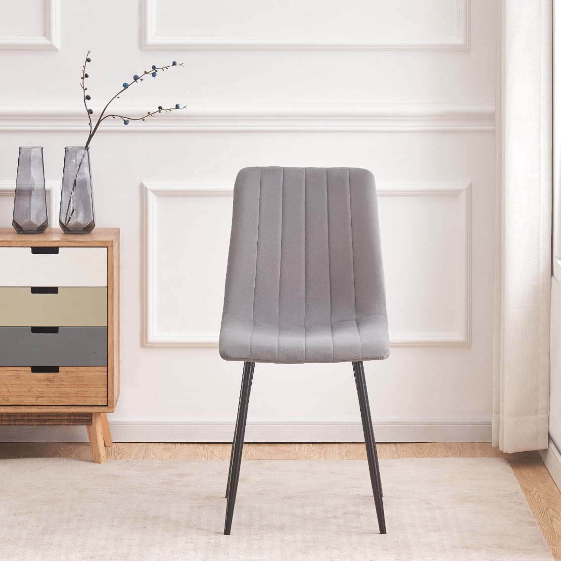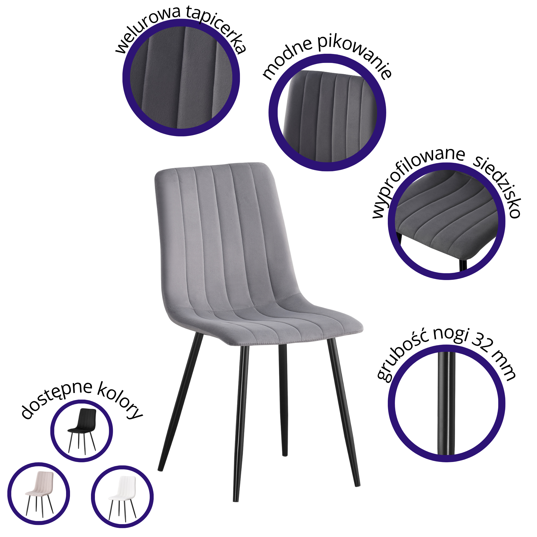 Krzesło tapicerowane do jadalni welurowe szare IRIS