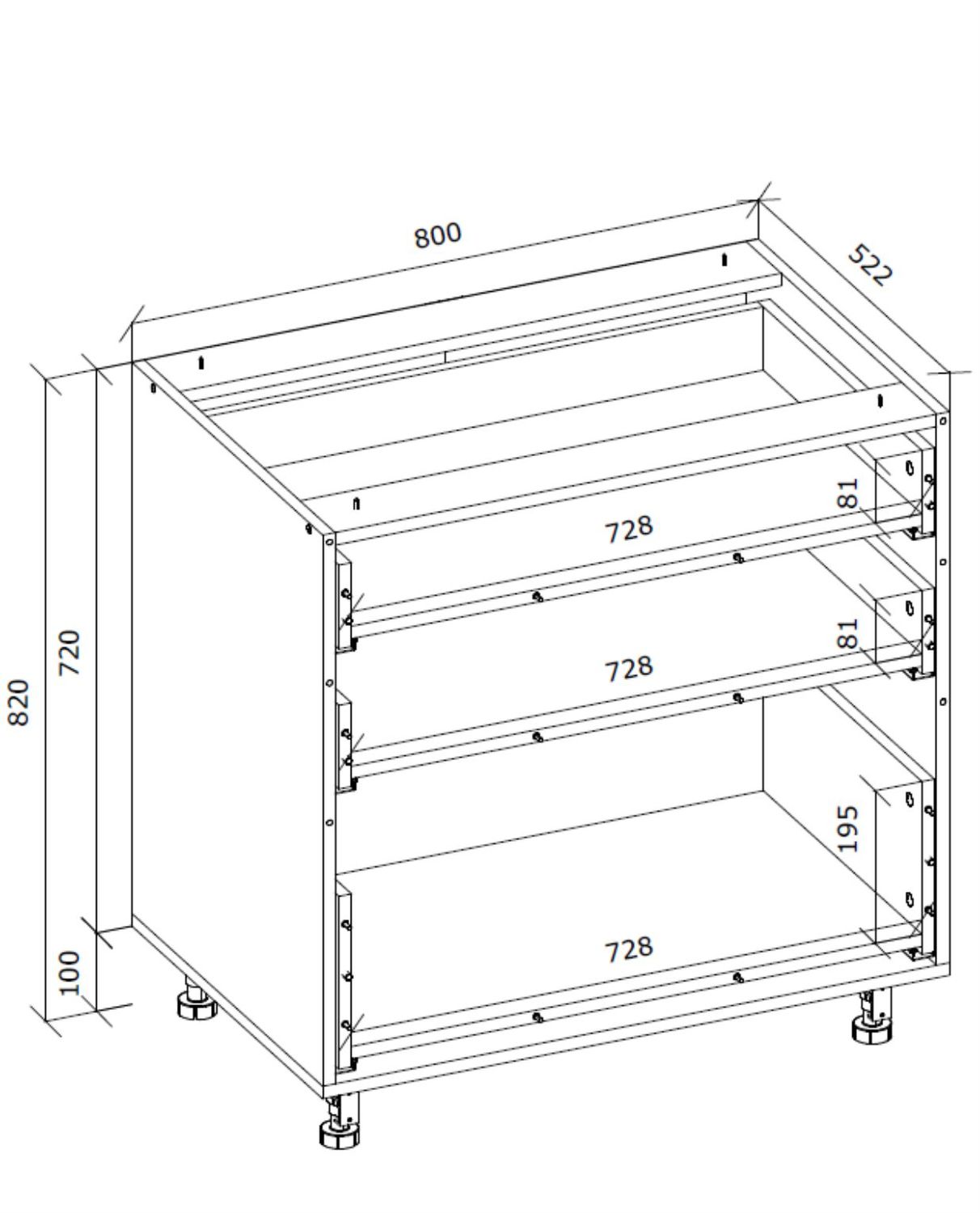 Kuchenna szafka modułowa dolna z szufladami Hettich BELLA D3S-80/82 biały mat