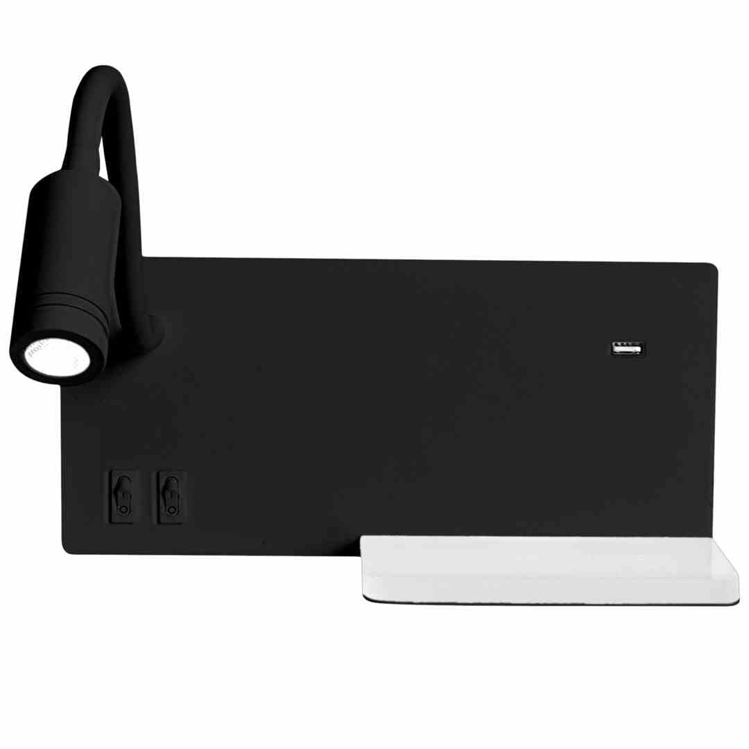 Lampa nocna z półką, czarna SHELF BLACK LED 4W+5W+2W