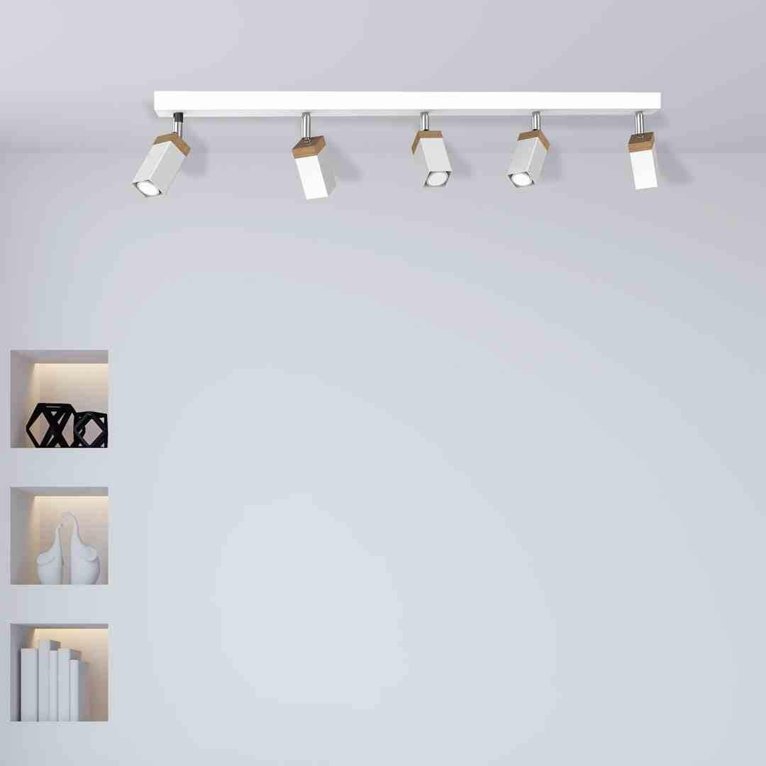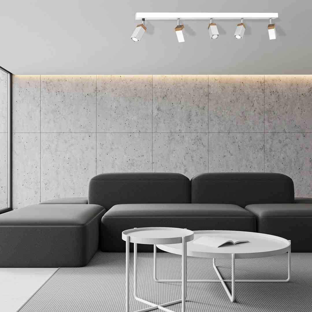 Lampa sufitowa, 5 kloszy, biała, kierunkowa SOLO SAWN WHITE / PATINATED WOOD 5x mini GU10