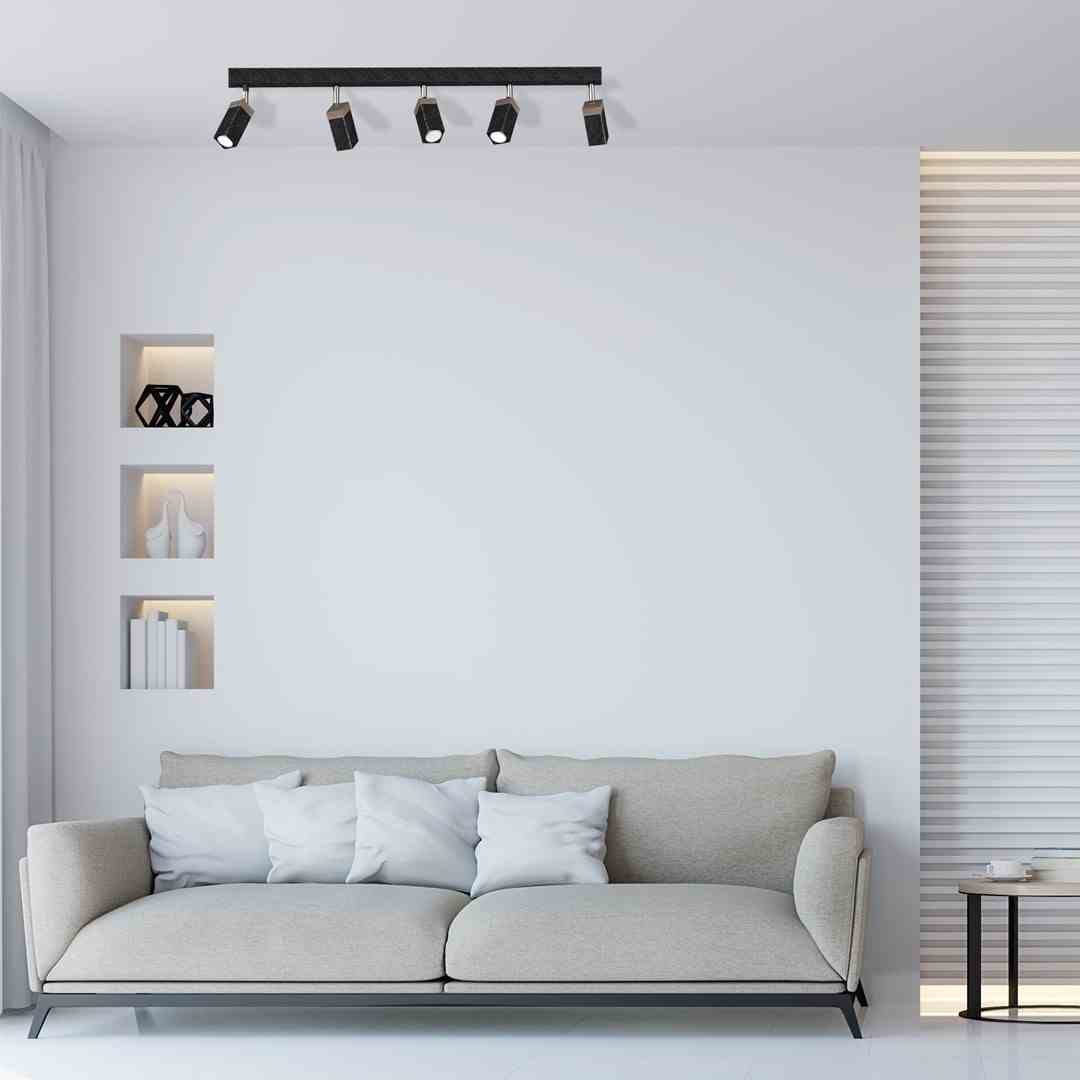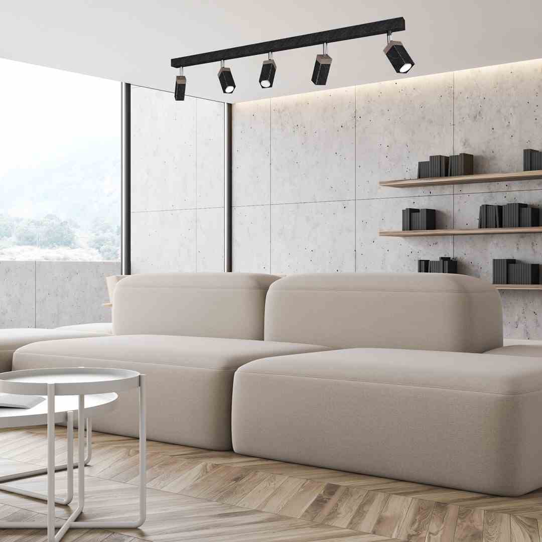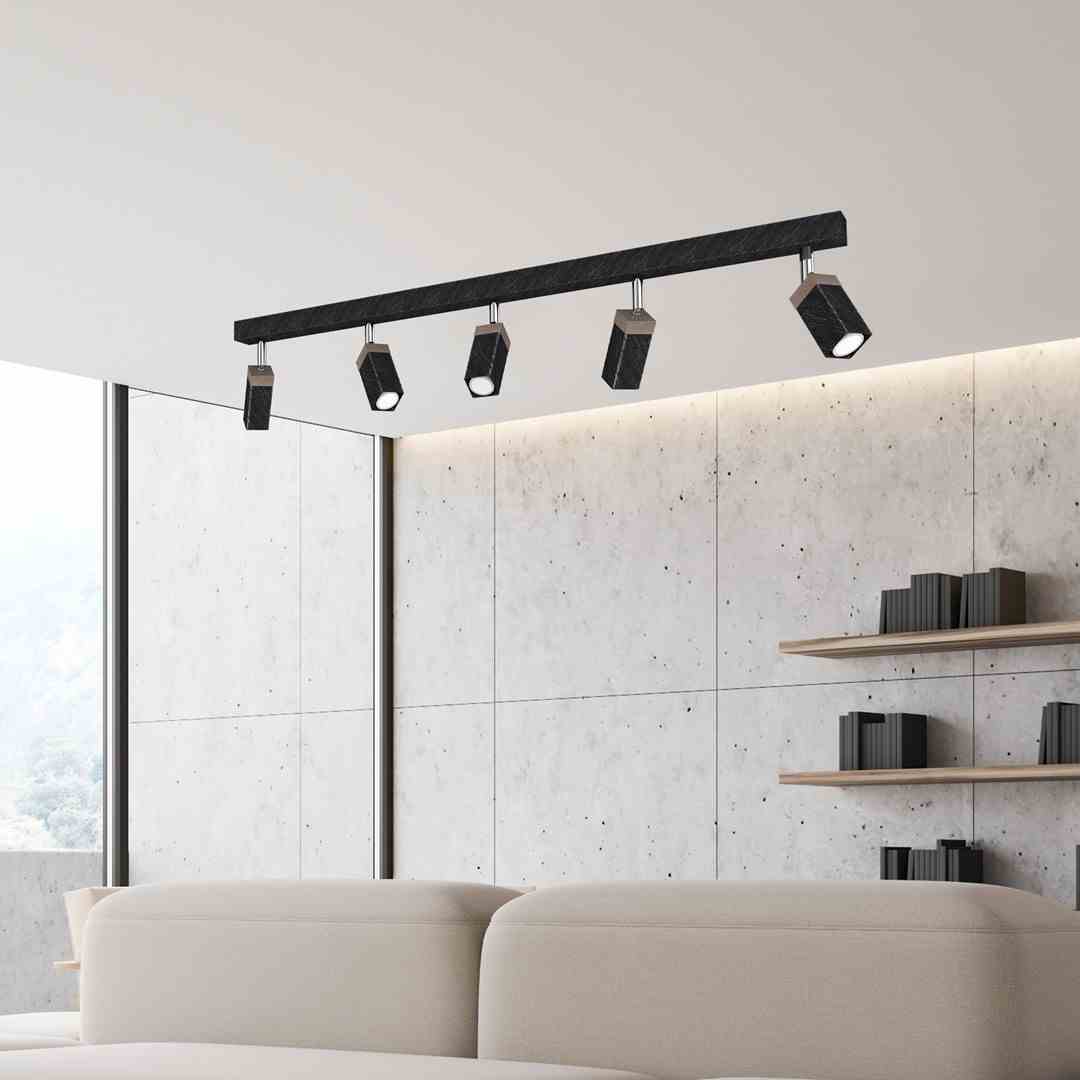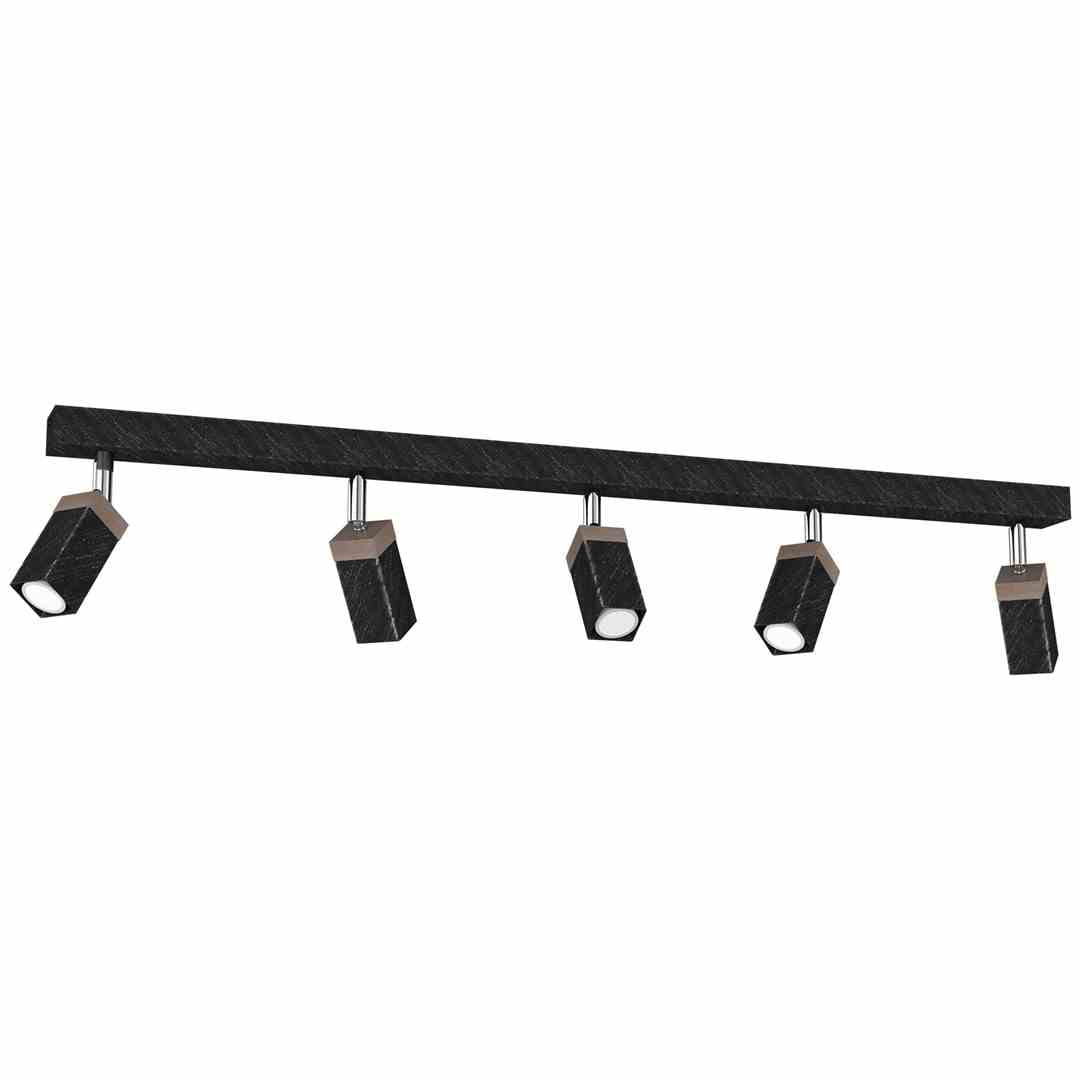 Lampa sufitowa, 5 kloszy, kierunkowa, czarna SOLO SAWN BLACK / PATINATED WOOD 5x mini GU10