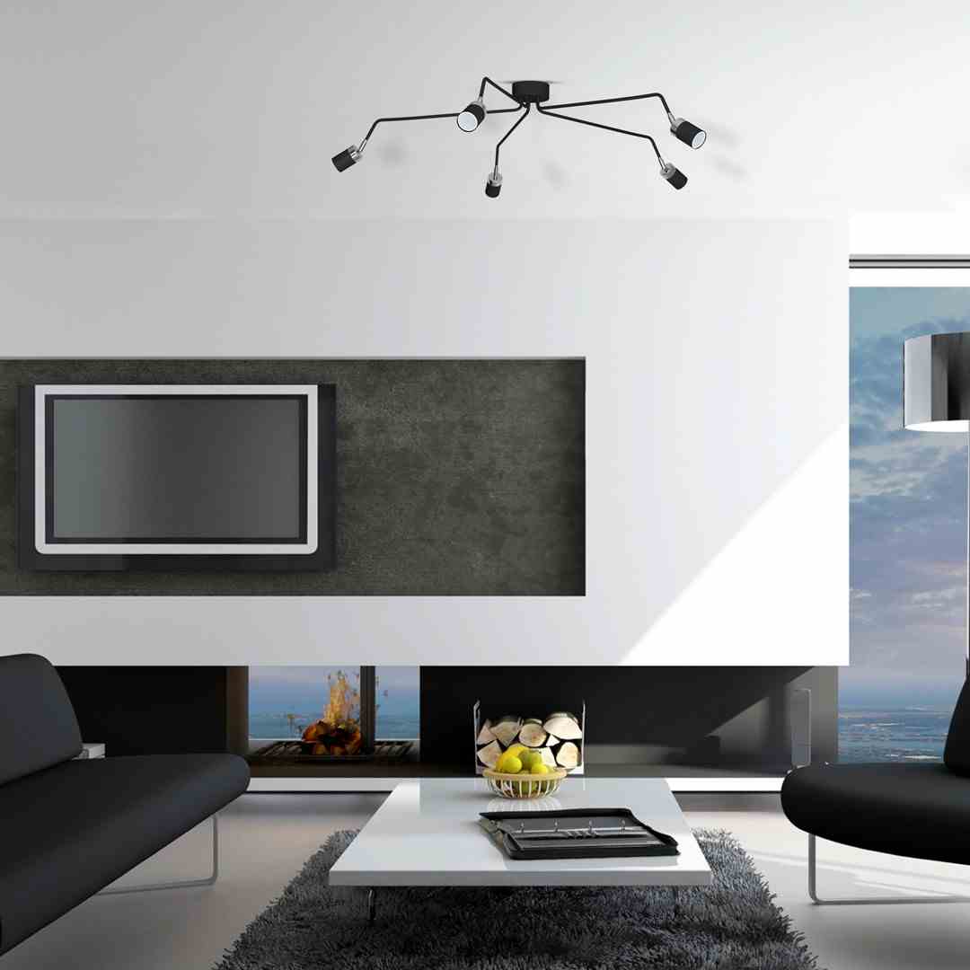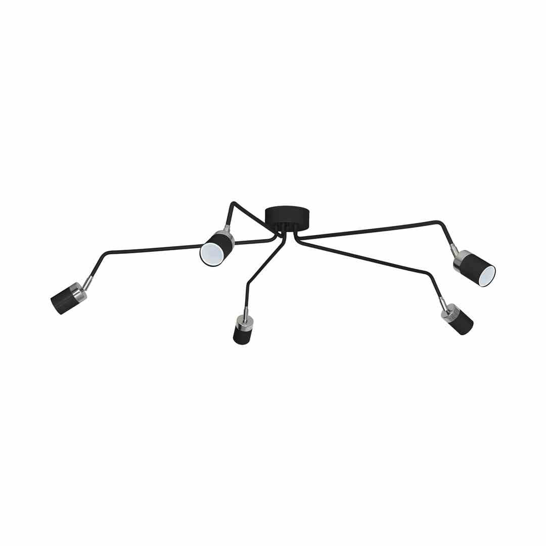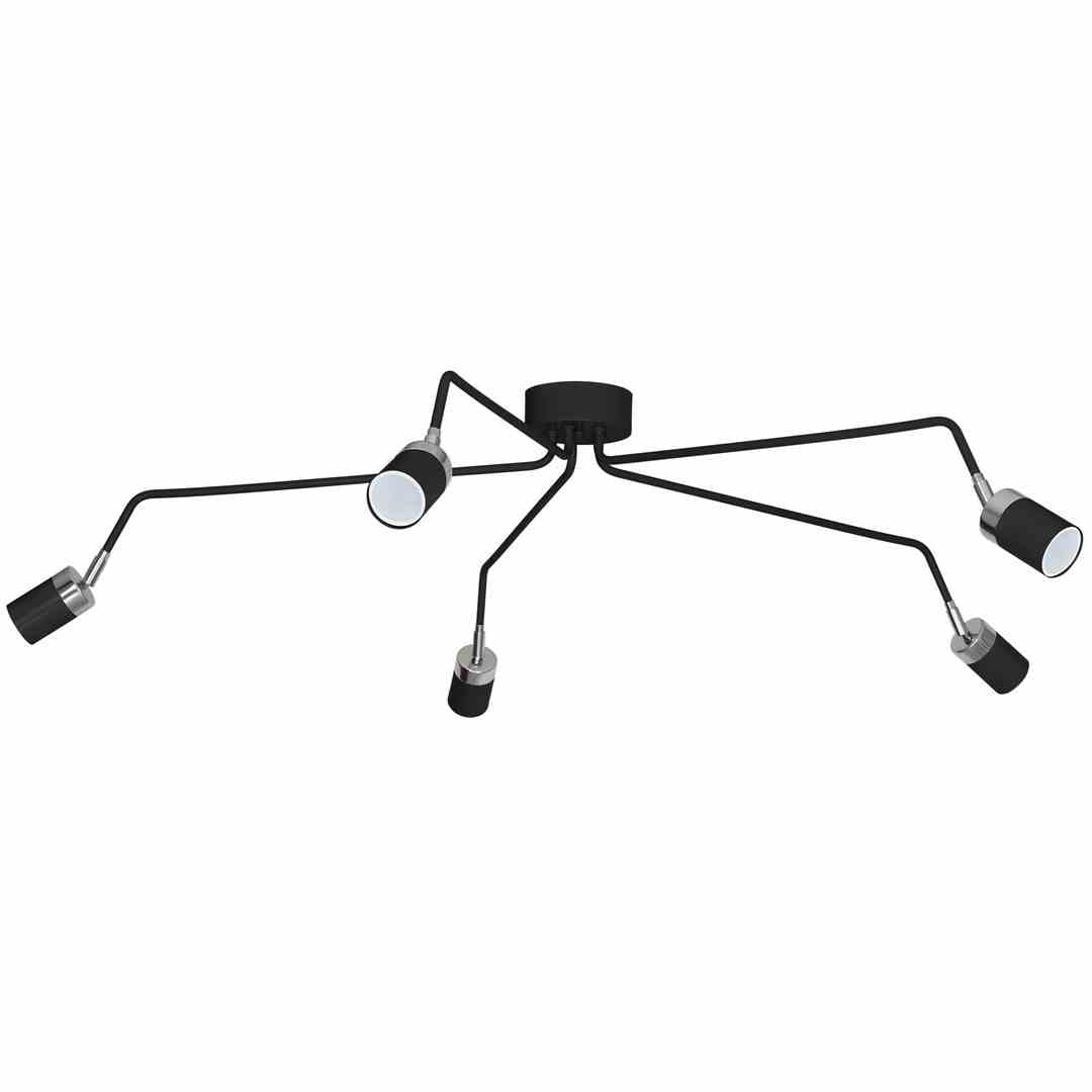• Lampa sufitowa z 5 źródłami światła na długich ramionach, czarny-chrom MLP1341