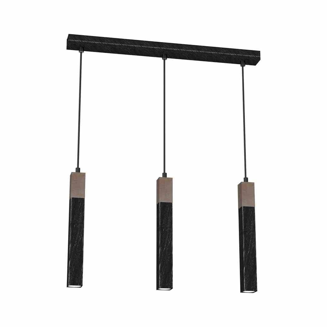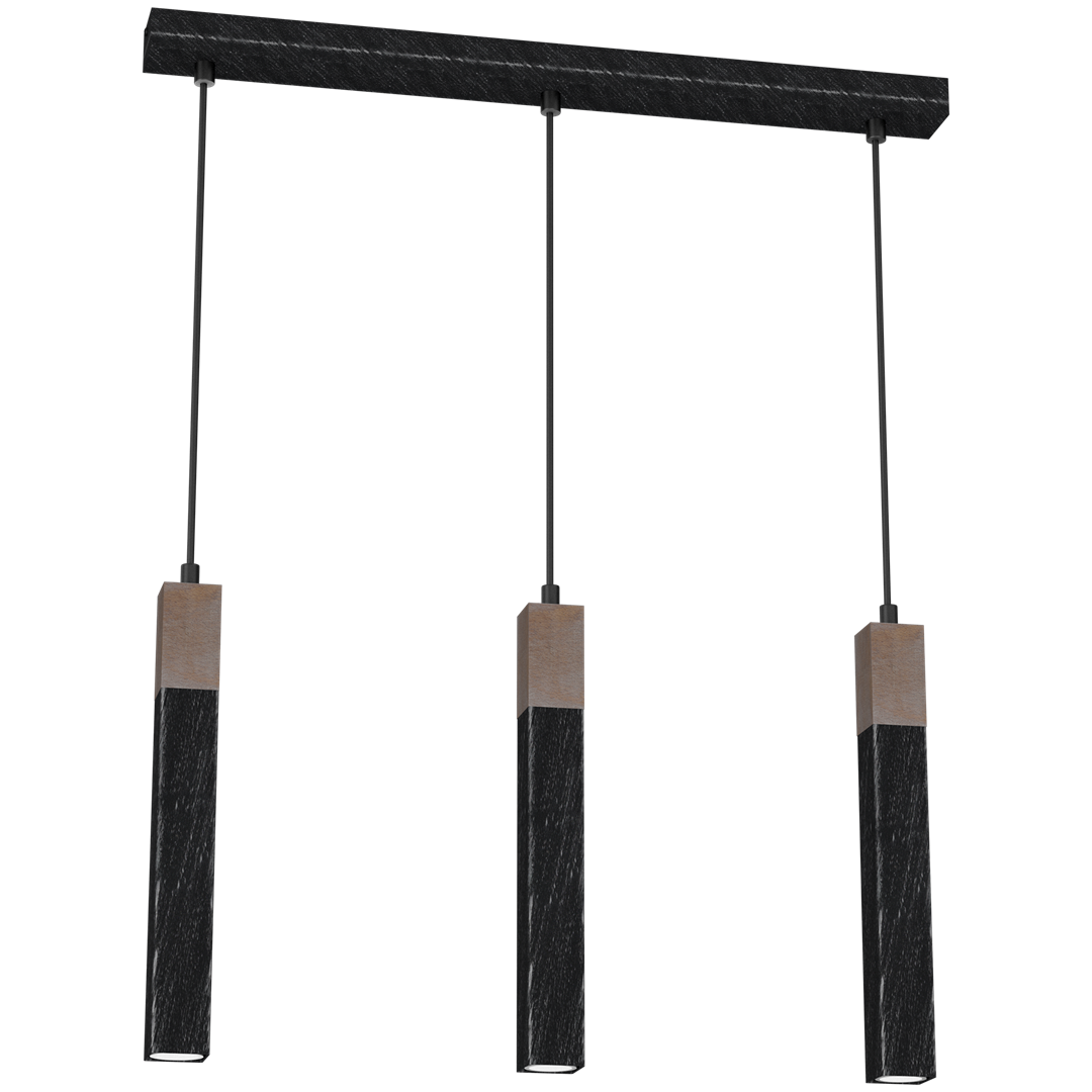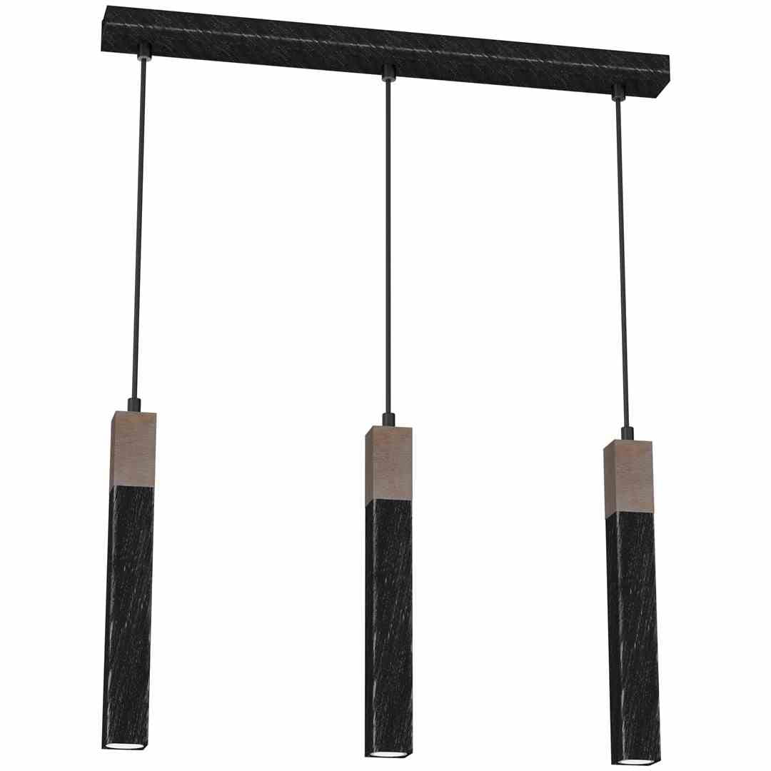 Lampa wisząca, czarna, potrójna SOLO SAWN BLACK / PATINATED WOOD 3x mini GU10