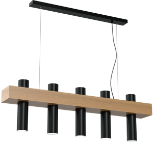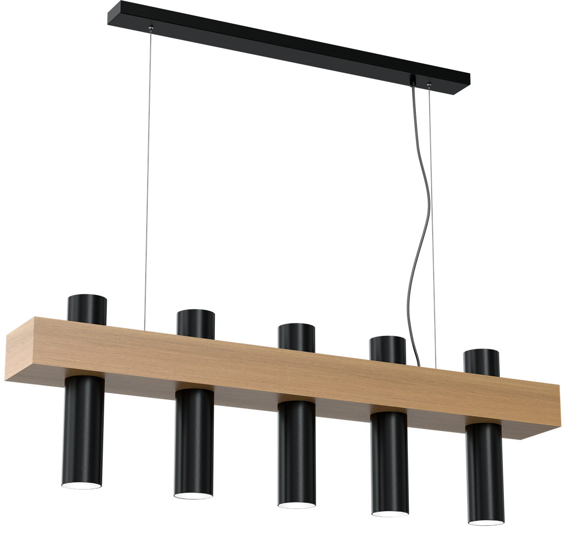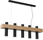 Lampa wisząca WEST BLACK 5xGU10, tuby, 5 kloszy, czarny, drewno