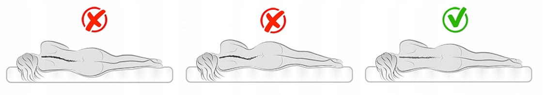 Powoduje nienaturalne wygięcie kręgosłupa co prowadzi do bólu pleców i utrudnia zmianę pozycji w trakcie snu. Nasz kręgosłup wygina się niczym łuk. W efekcie wstaniesz obolały i nie wyspany.