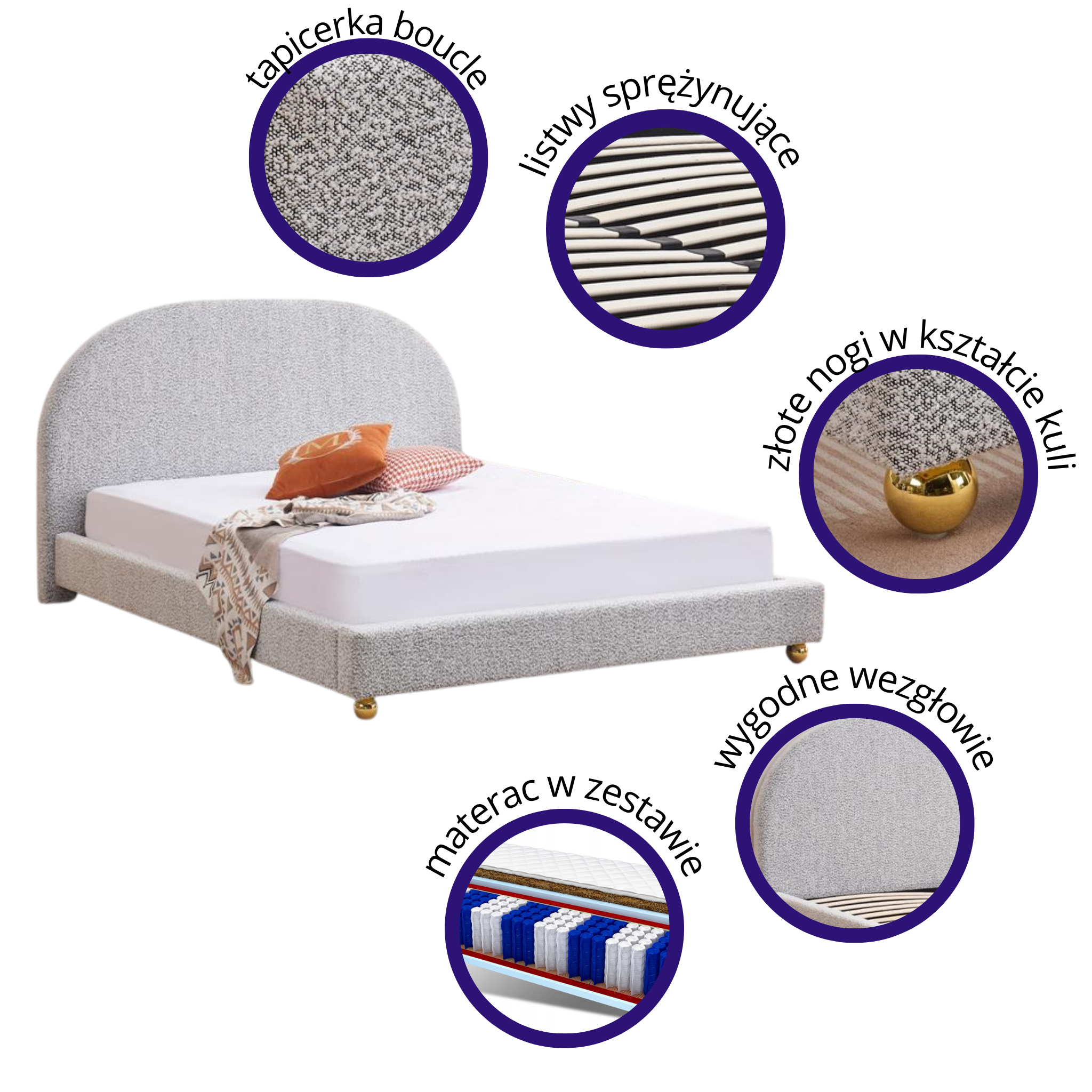 Łatwe Utrzymanie Czystości: Boucle charakteryzuje się łatwością czyszczenia, co sprawia, że łóżko pozostaje zawsze świeże i estetyczne.