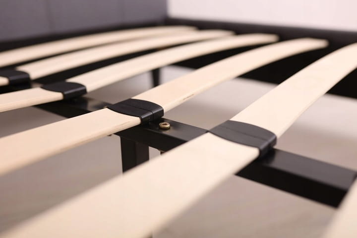 Wysoka Jakość Materiałów: Wytrzymałe łóżko NERI to połączenie solidnej metalowej konstrukcji ze stelażem z listwami topolowymi, gwarantujące wytrzymałość i stabilność.