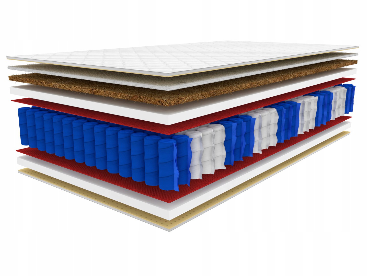 Materac z wkładem kieszeniowym otoczonym dwustronnie pianką poliuretanową wysoko elastyczną oraz jednostronnie matą kokosową. Wykonany z zastosowaniem najnowszych technologii, ze sprawdzonych i certyfikowanych komponentów najwyższej jakości.