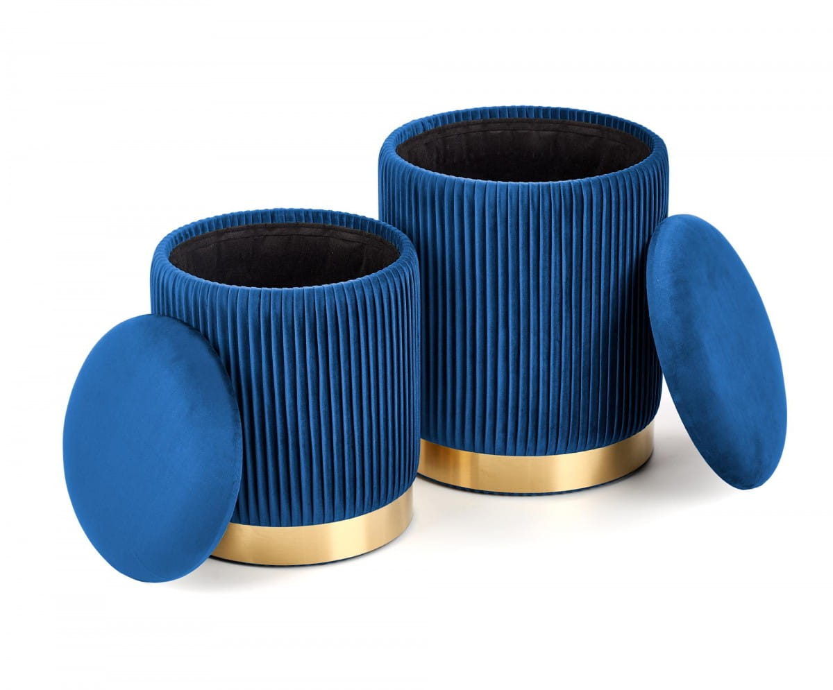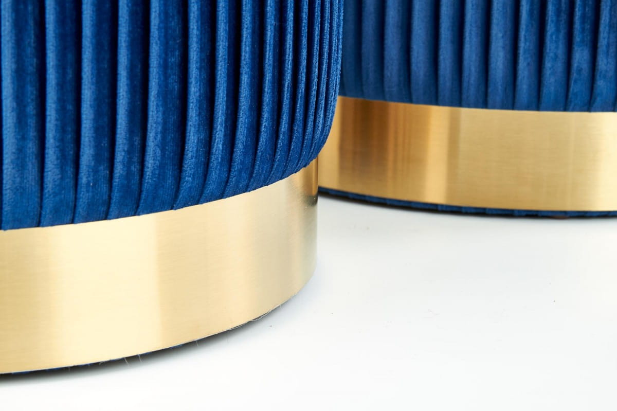 Monty zestaw 2 puf welurowych w modnym i eleganckim kolorze granatowym ze złotymi dodatkami. Te stylowe pufy Monty idealnie wpasują się w każde wnętrze, dodając mu niepowtarzalnego charakteru.
