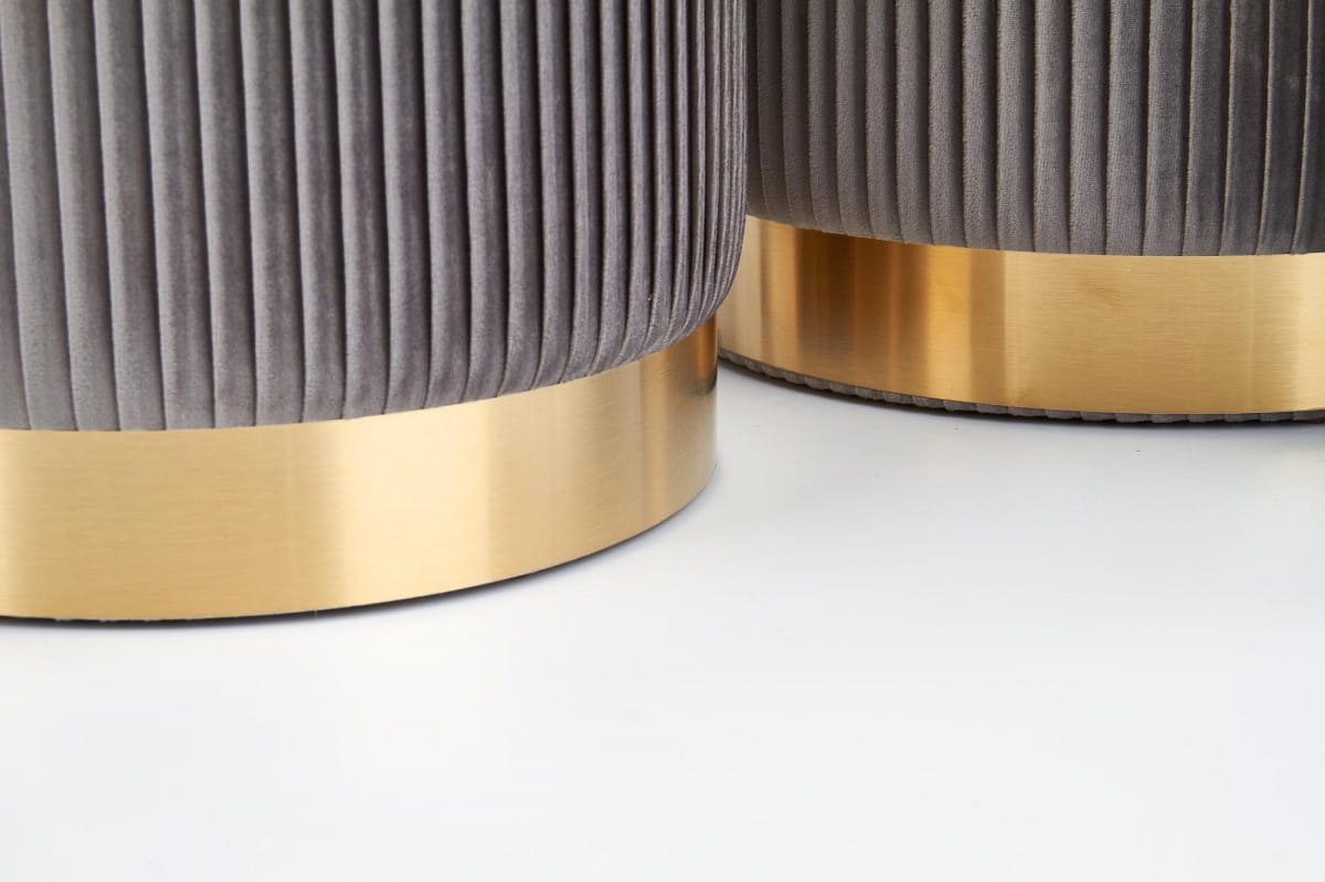 Piękne tapicerowane pufy MONTY to świetna propozycja do wnętrz w stylu glamour i nowoczesnym. Pufy tapicerowane są, miękką w dotyku tkaniną velvet. Okrągła, chromowana podstawa podtrzymuje pufę i nadaje jej niezwykłego wyglądu. Pufy pasują do każdego pomieszczenia,stanowią dodatkowe miejsce do siedzenia i przechowywania różnych drobiazgów. Nie zajmują dużo miejsca, a dodatkowo mniejszą z nich można schować do większej.