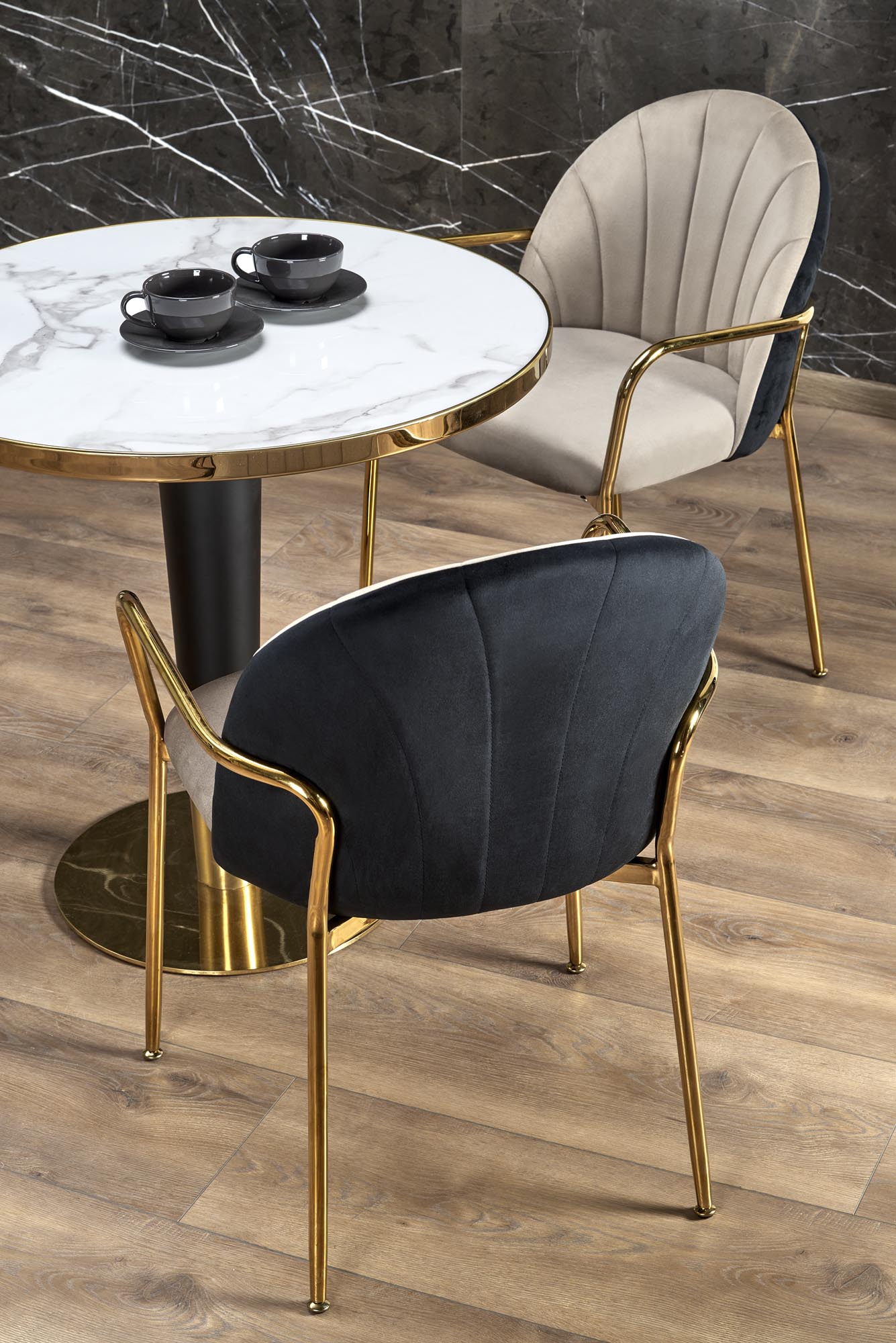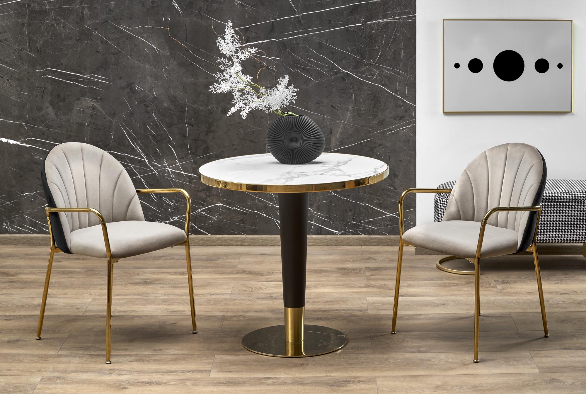 MORATA stół okrągły, biały marmur, czarny, złoty