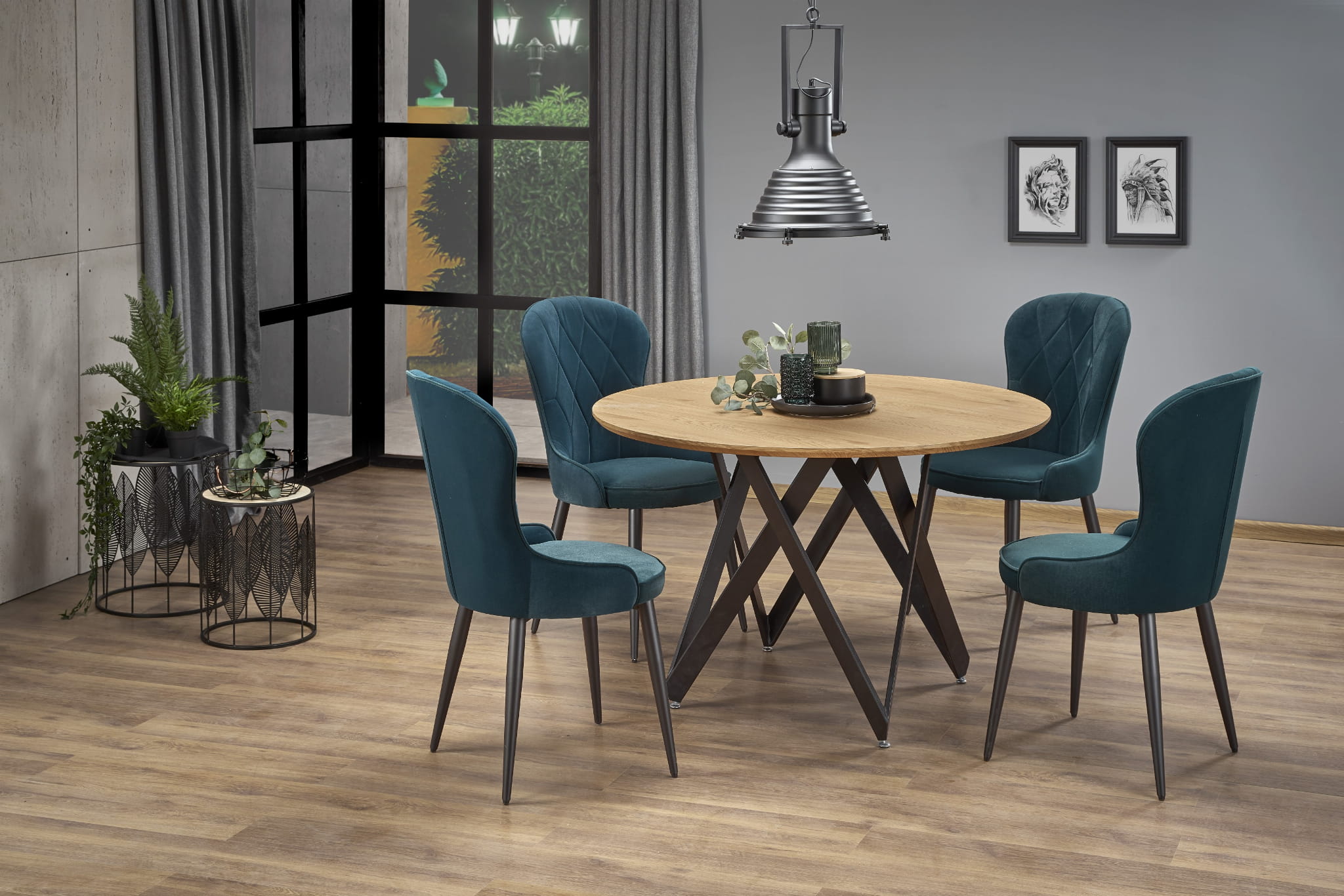 MOZAMBIK stół okrągły, dab złoty, czarna konstrukcja, 5-osobowy, loftowy
