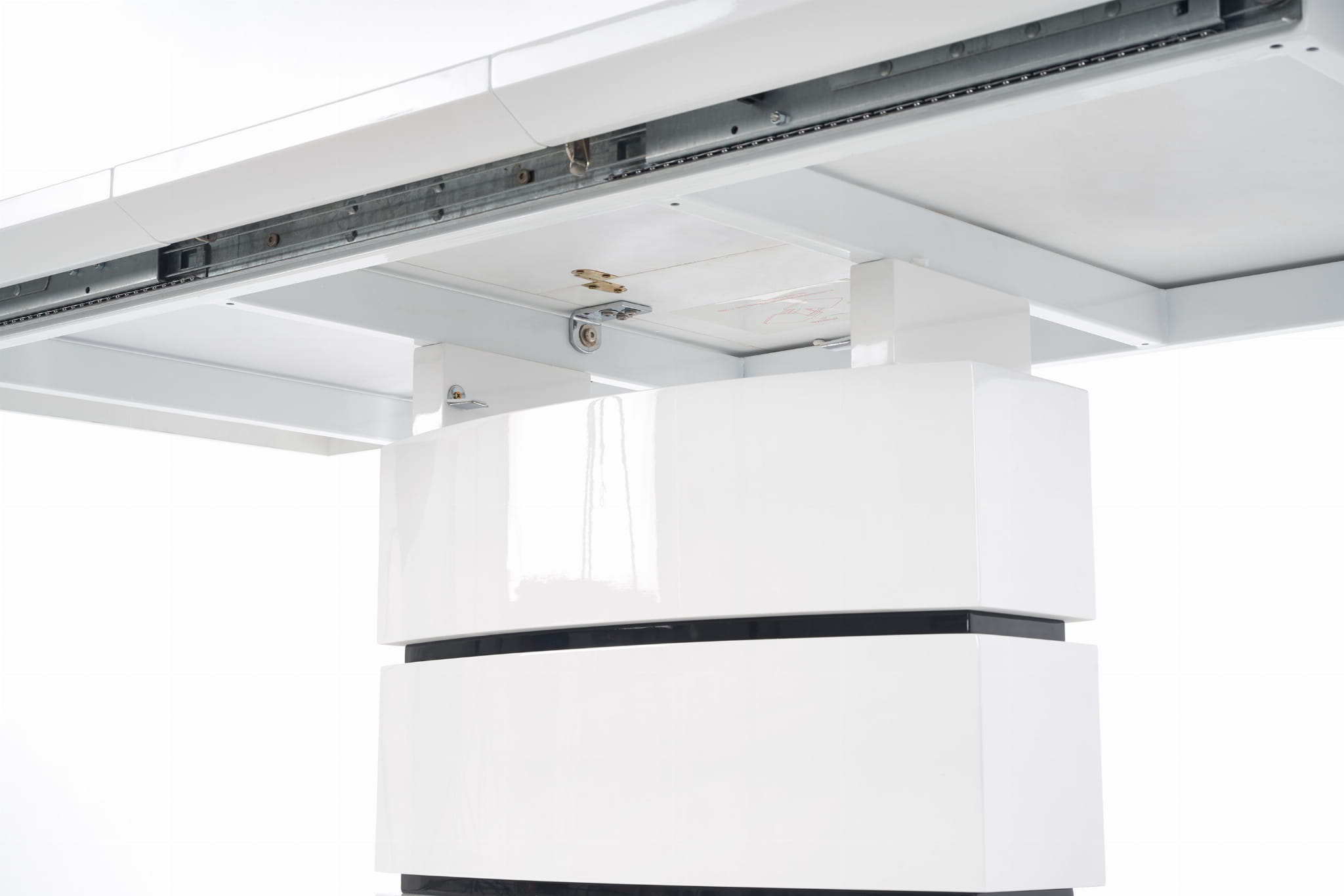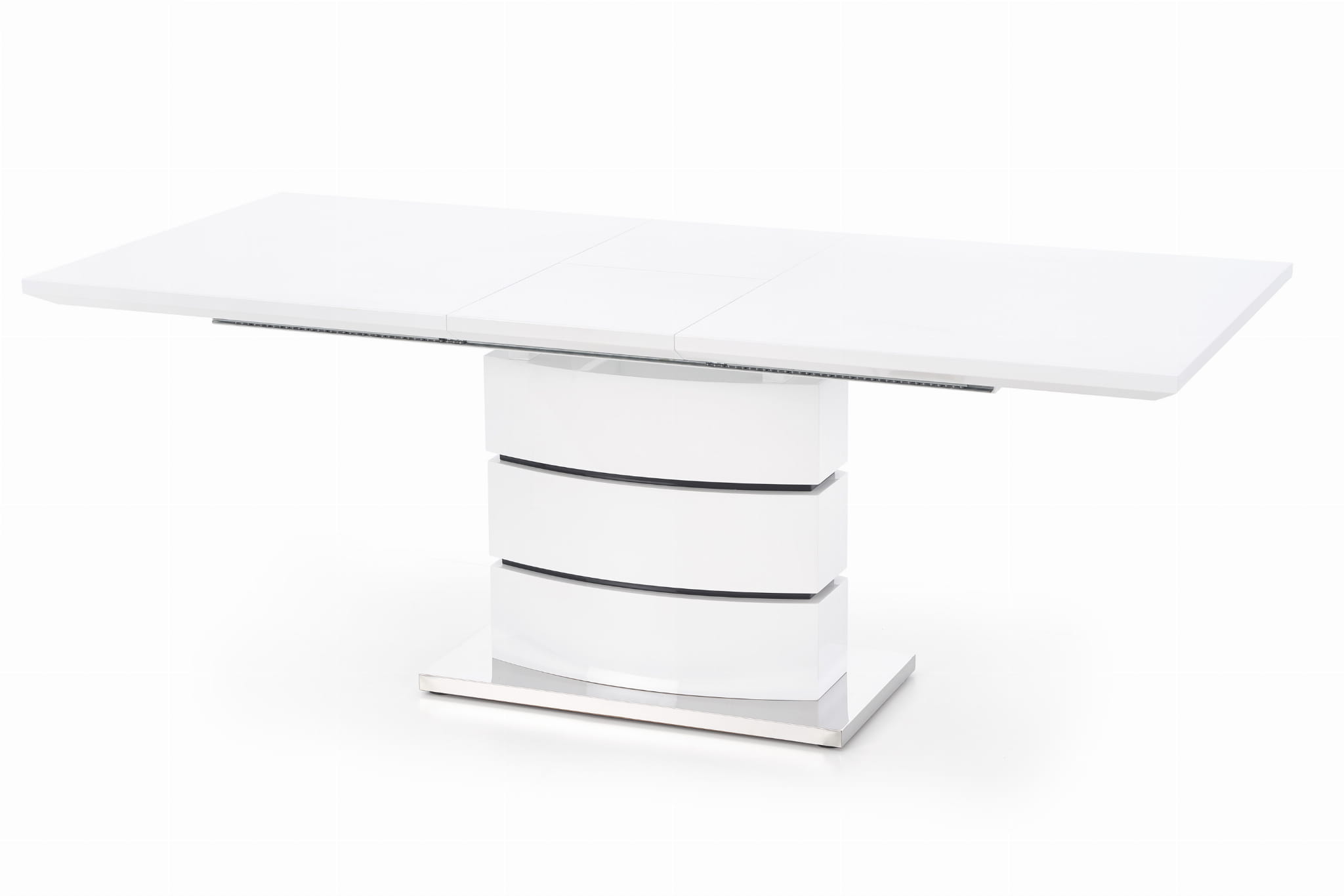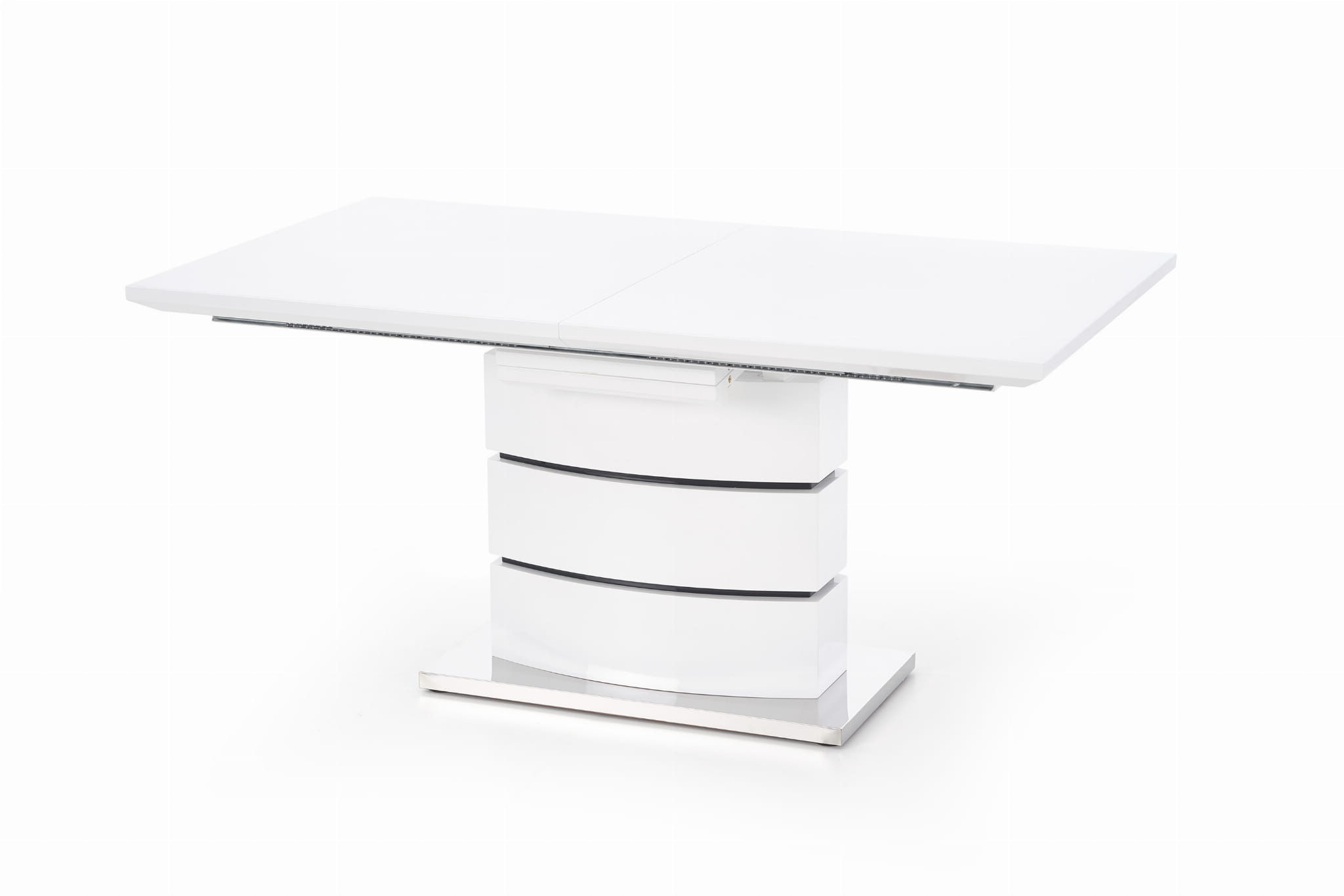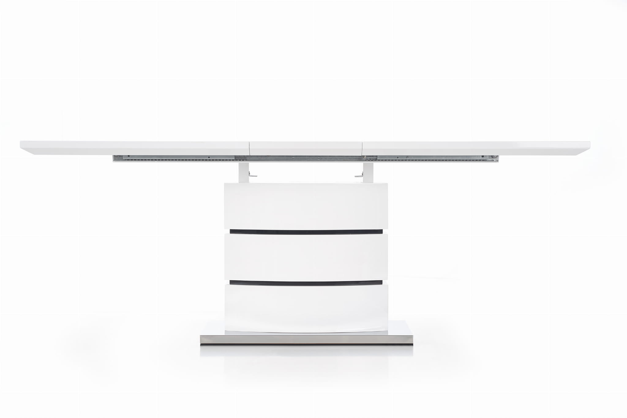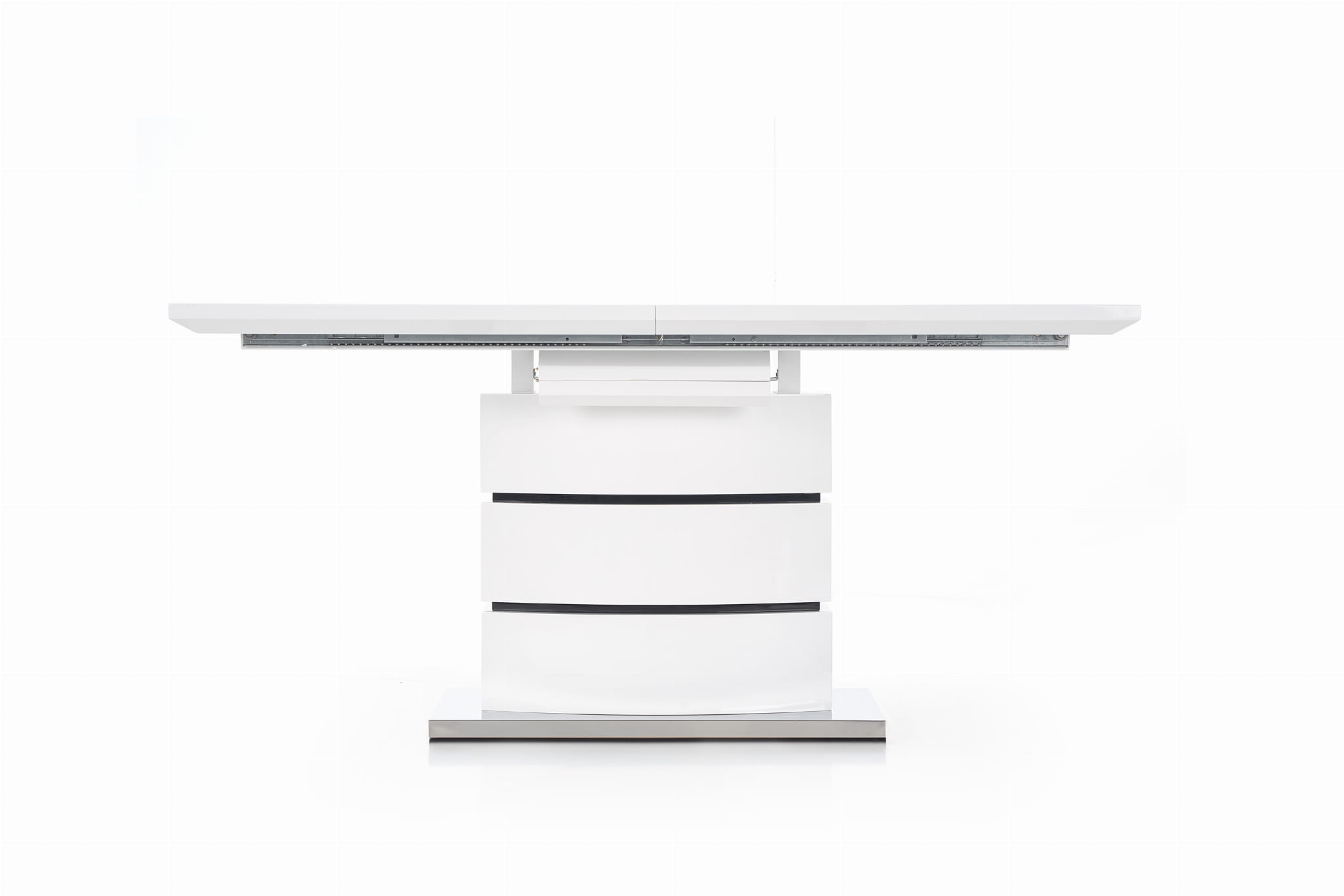 NOBEL stół rozkładany biały, na jednej nodze, glamour, prostokątny