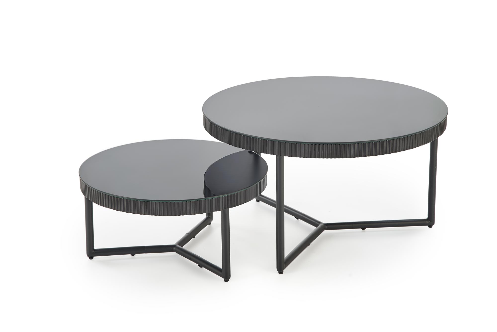 Okrągła czarna ława z połyskiem 80/45 cm szkło/MDF/stal COSMO ława, czarny