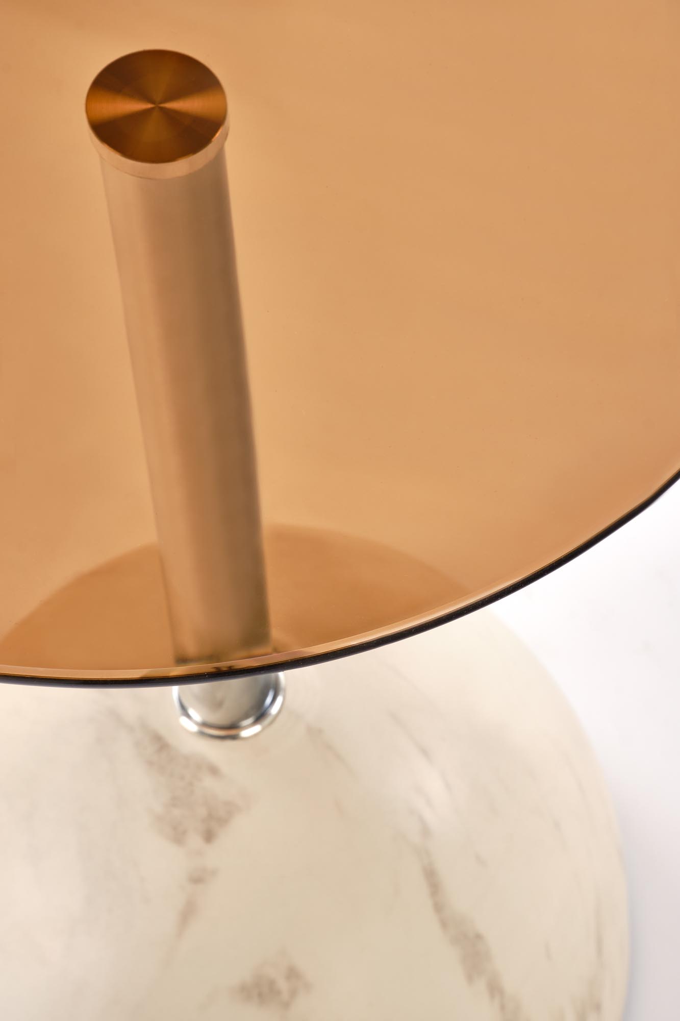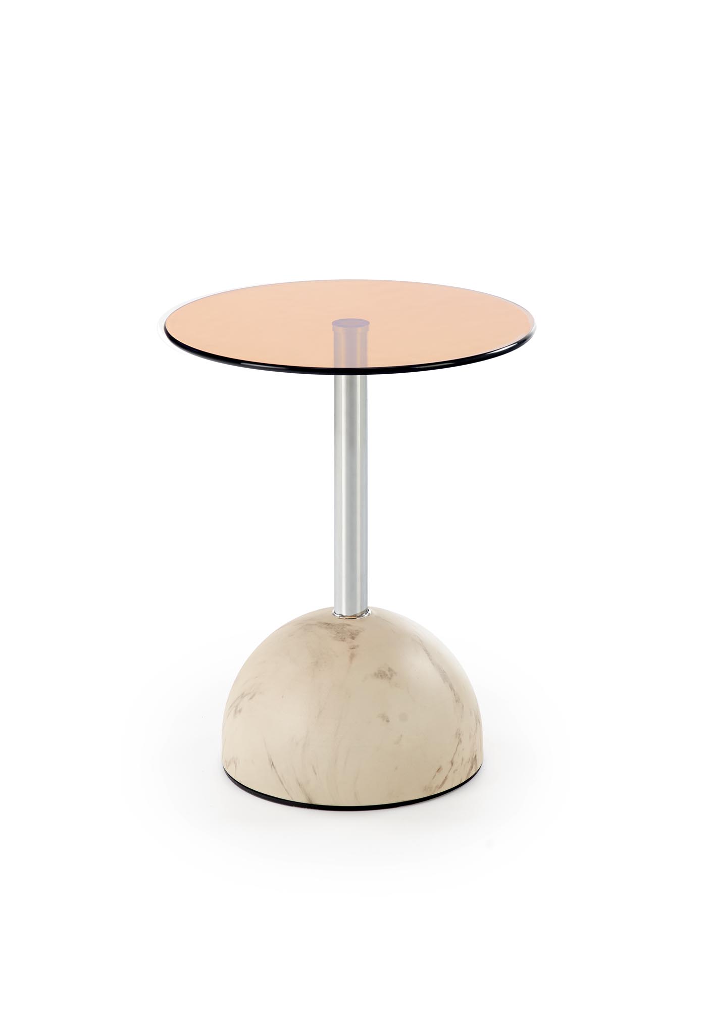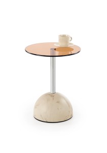 Okrągła mała ława, szklany blat, beżowy marmur/szkło brąz 40/51 ARIANA