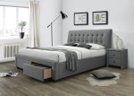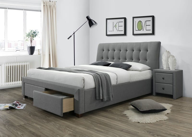 PERCY łóżko tapicerowane szary z szufladami nowoczesne tkanina drewno
