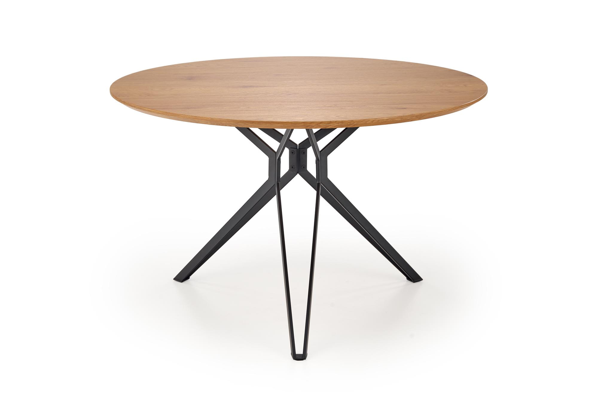 Z jego średnicą wynoszącą 120 cm i wysokością 76 cm, doskonale sprawdzi się w różnych pomieszczeniach, od kuchni po jadalnię czy pokój dzienny. Blat w kolorze dębu złotego nadaje mu elegancji, podczas gdy czarny stelaż dodaje kontrastu i charakteru.