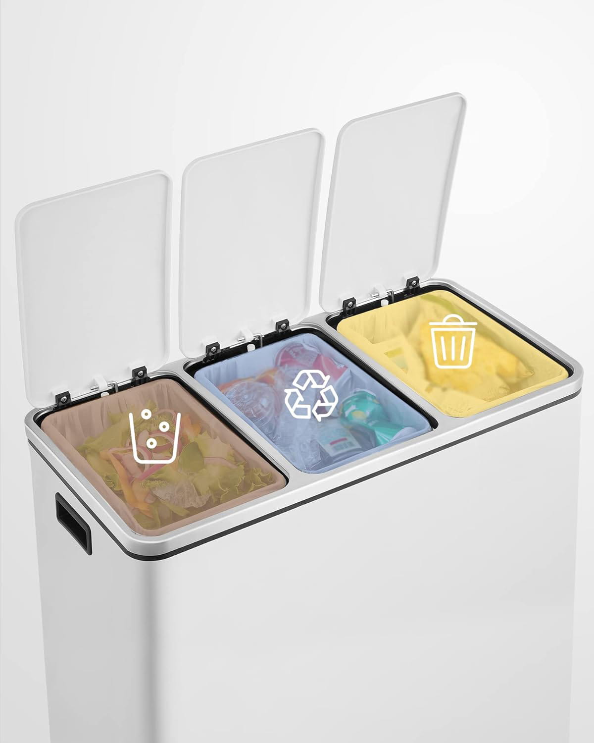 POTRÓJNY KOSZ NA ŚMIECI, DO SEGREGACJI, BIAŁY, 3 x 18L= 54L