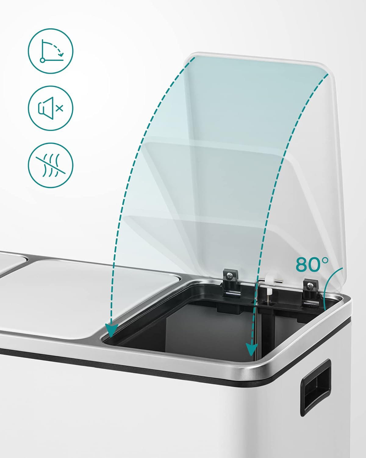 Kosz na odpady z 3 osobnymi, wyjmowanymi pojemnikami sprawdzi się w każdej kuchni, nawet tej najmniejszej. Warto wspomnieć jak ważna jest segregacja śmieci w obecnych czasach. Dzięki segregacji śmieci mamy znaczący wpływ na otaczające nas środowisko. Dokonując prawidłowego podziału ograniczamy tony śmieci, które są zagrożeniem dla życia ludzi i zwierząt. Kosz możemy umieścić również w pokoju czy też garażu, wszędzie tam, gdzie gromadzą nam się śmieci. Użyta w koszu powierzchnia, która nie pozostawia brzydkich śladów palców sprawi, że ten produkt spełni Twoje największe oczekiwania. Czyż nie chodzi nam o łatwe i szybkie czyszczenie? Oczywiście, że tak i właśnie z tym koszem to osiągniesz. Szczelne pokrywy uniemożliwiają roznoszenie się nieprzyjemnych zapachów z kosza.