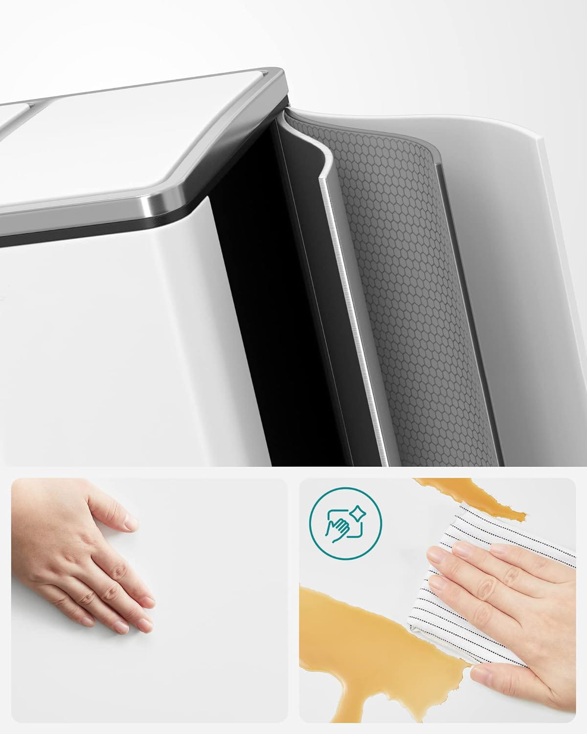 Otwierane za pomocą pedałów kosze zapewniają pełną higienę. Nie musimy rękami dotykać pokrywy kosza. Co więcej takie rozwiązanie spodoba się również dzieciom, gdyż pedały nie wymagają użycia ogromnej siły, aby otworzyć dany pojemnik. Wyjmowane pojemniki ułatwiają nie tylko ich czyszczenie, ale również wynoszenie śmieci.