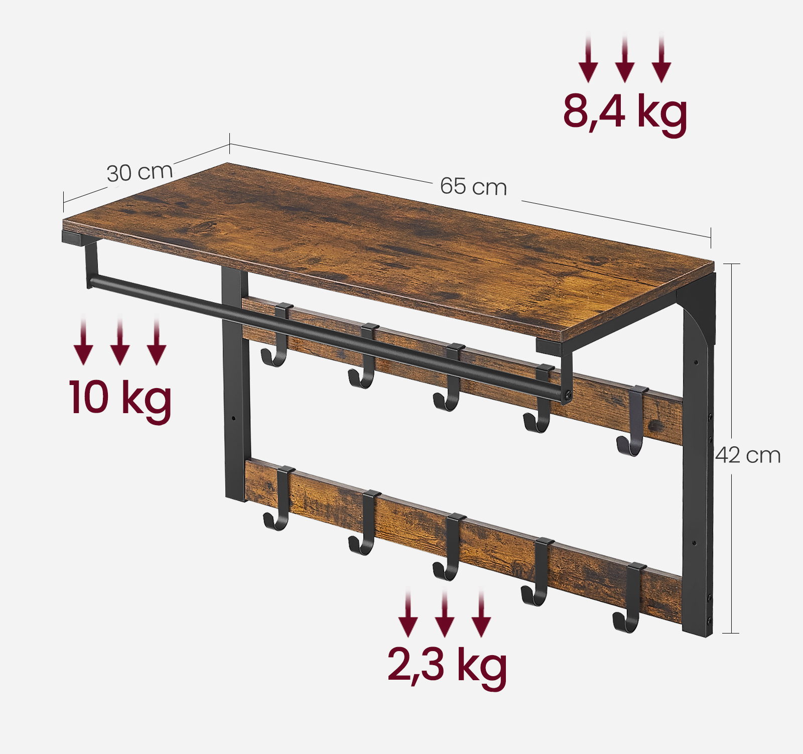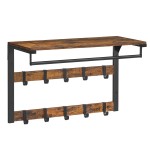 PÓŁKA WISZĄCA ŚCIENNA Z WIESZAKAMI - RUSTYKALNY BRĄZ