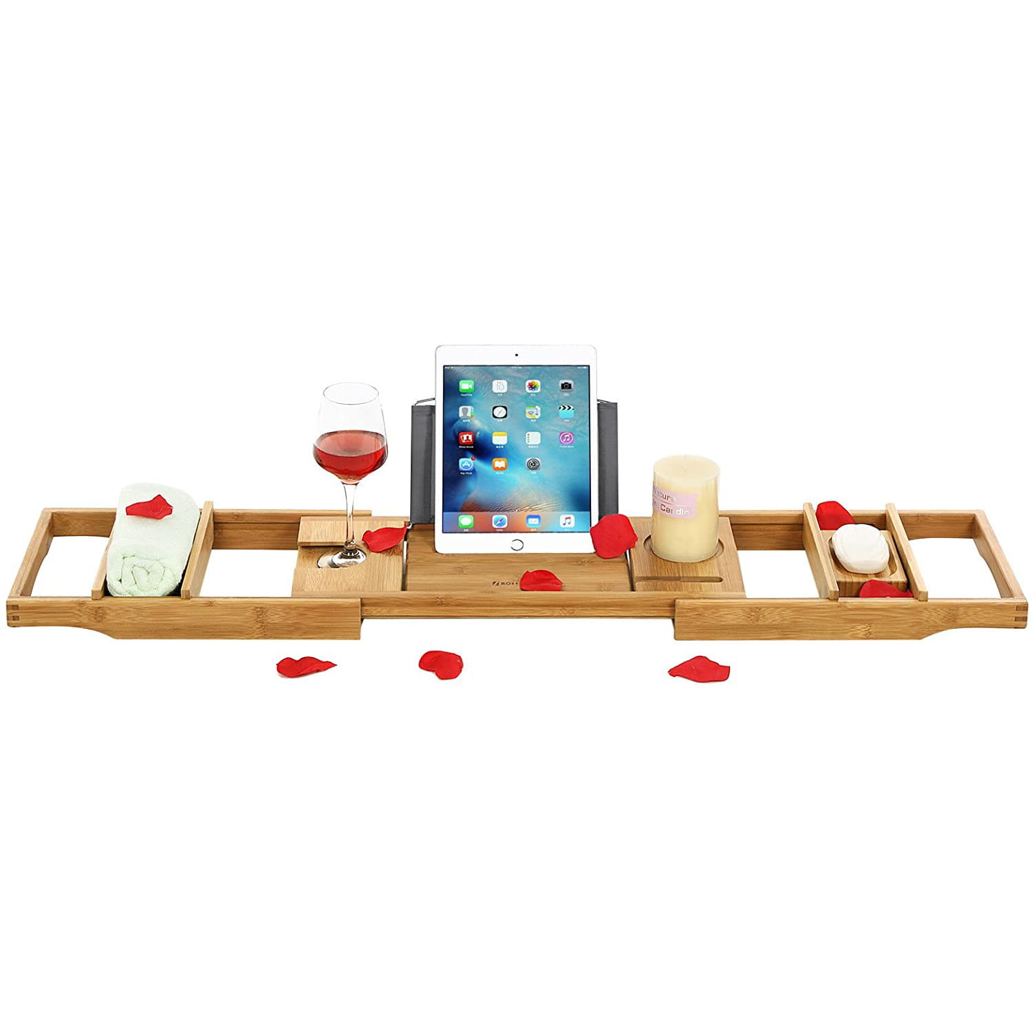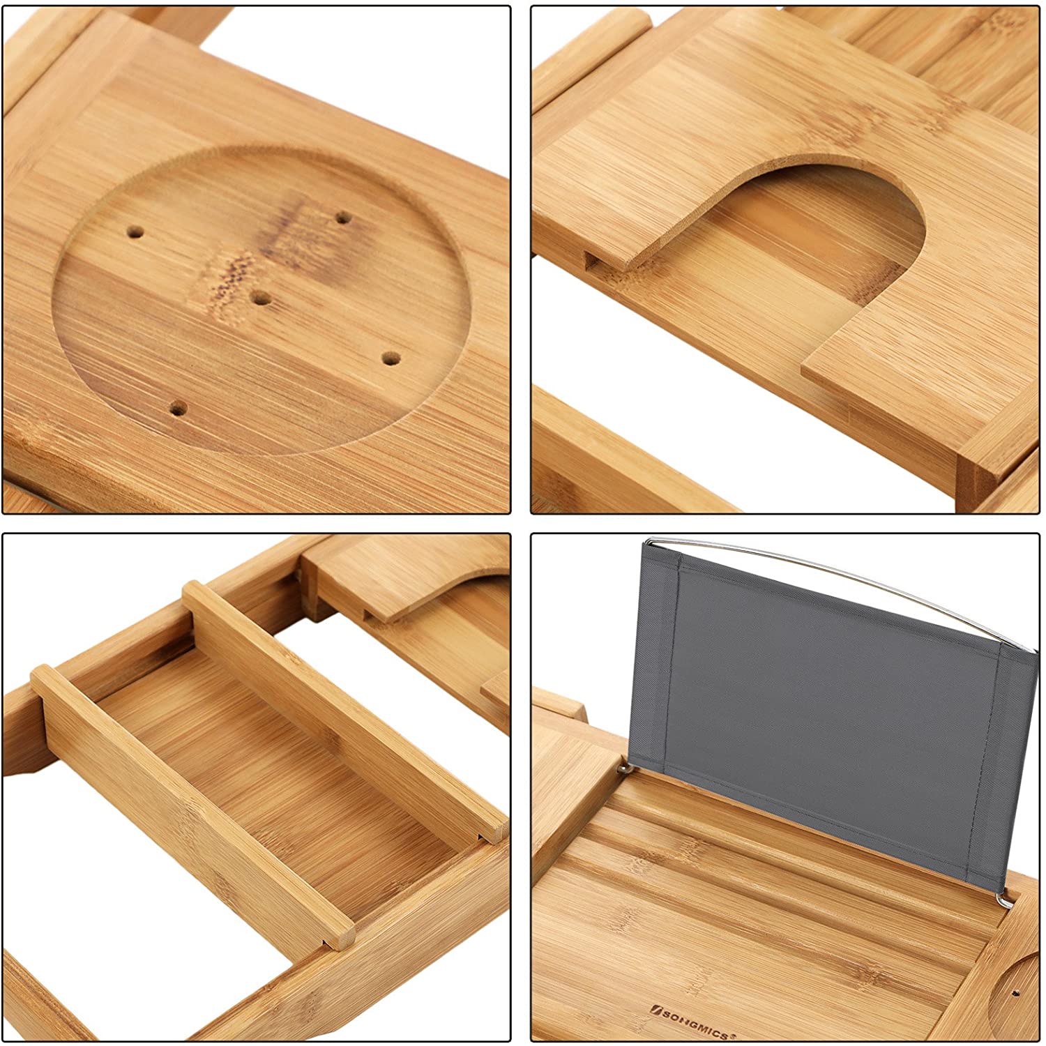 Produkt posiada bardzo dużo wycięć, sprawiając, że można w tych przestrzeniach umieścić różne produkty, od mydeł, świeczek, po lampkę z winem, mały ręcznik, a nawet tablet. Ciesz się ulubionym serialem albo przeczytaj ulubioną książkę będąc w wannie.