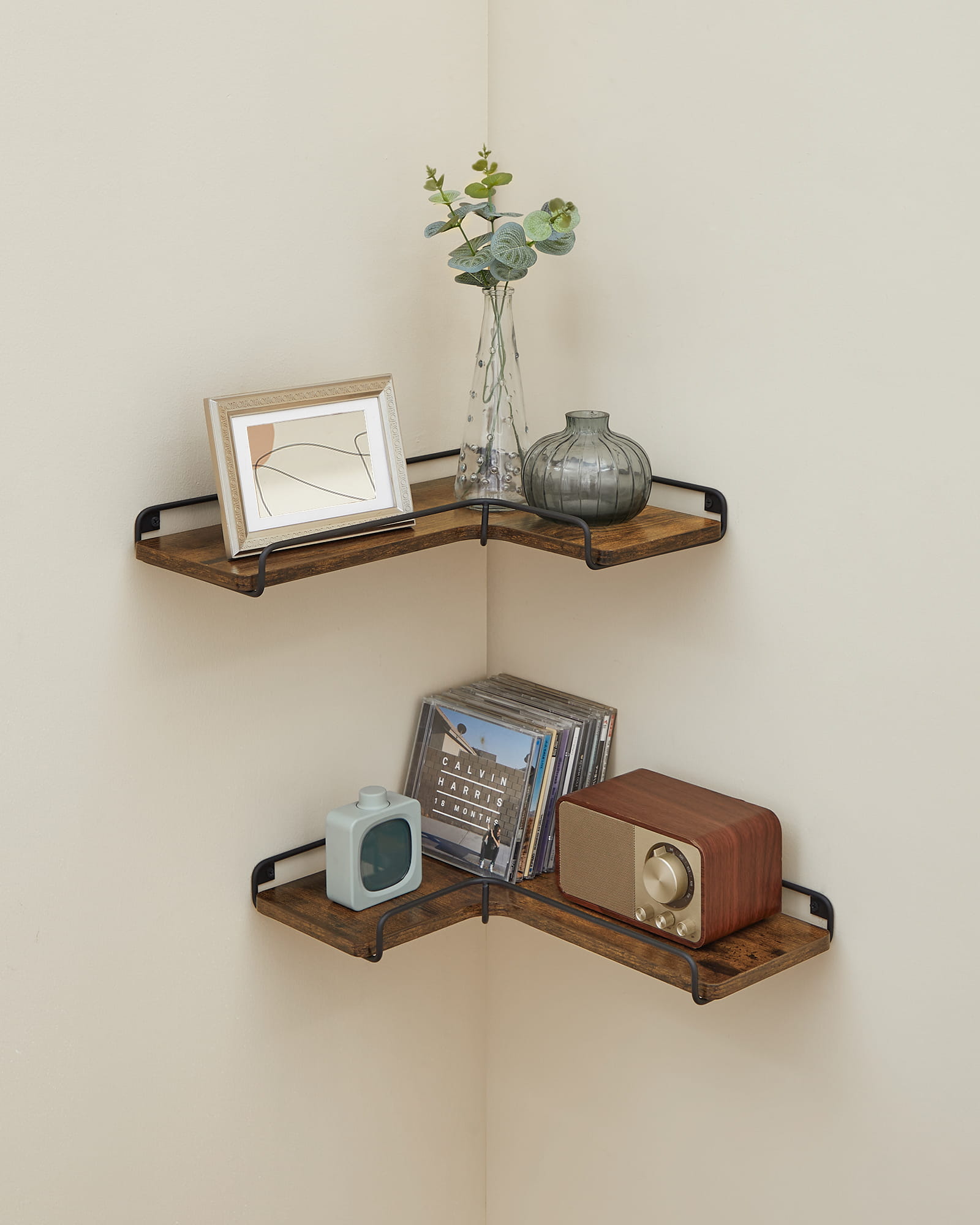 Półki można zamontować na sposoby pokazane na zdjęciu tworząc przepiękną wystawę naszych przedmiotów.