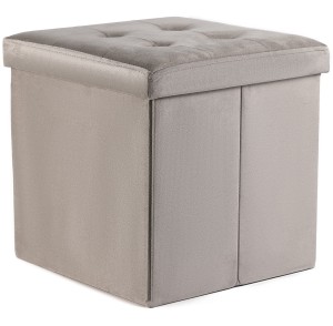 Pufa składana L z guzikami, beżowa, schowek, podnóżek - 38x38x38cm aksamit beż
