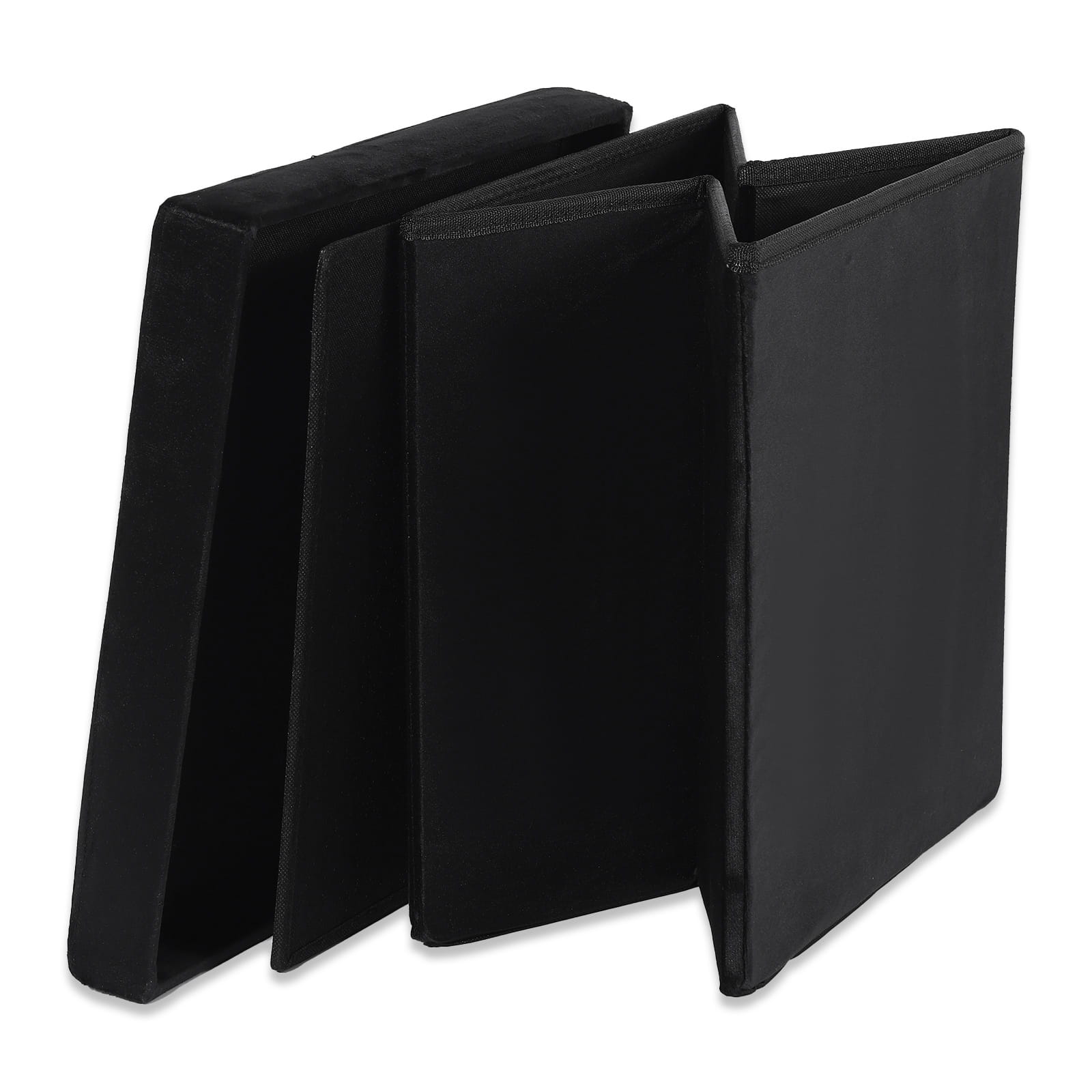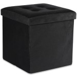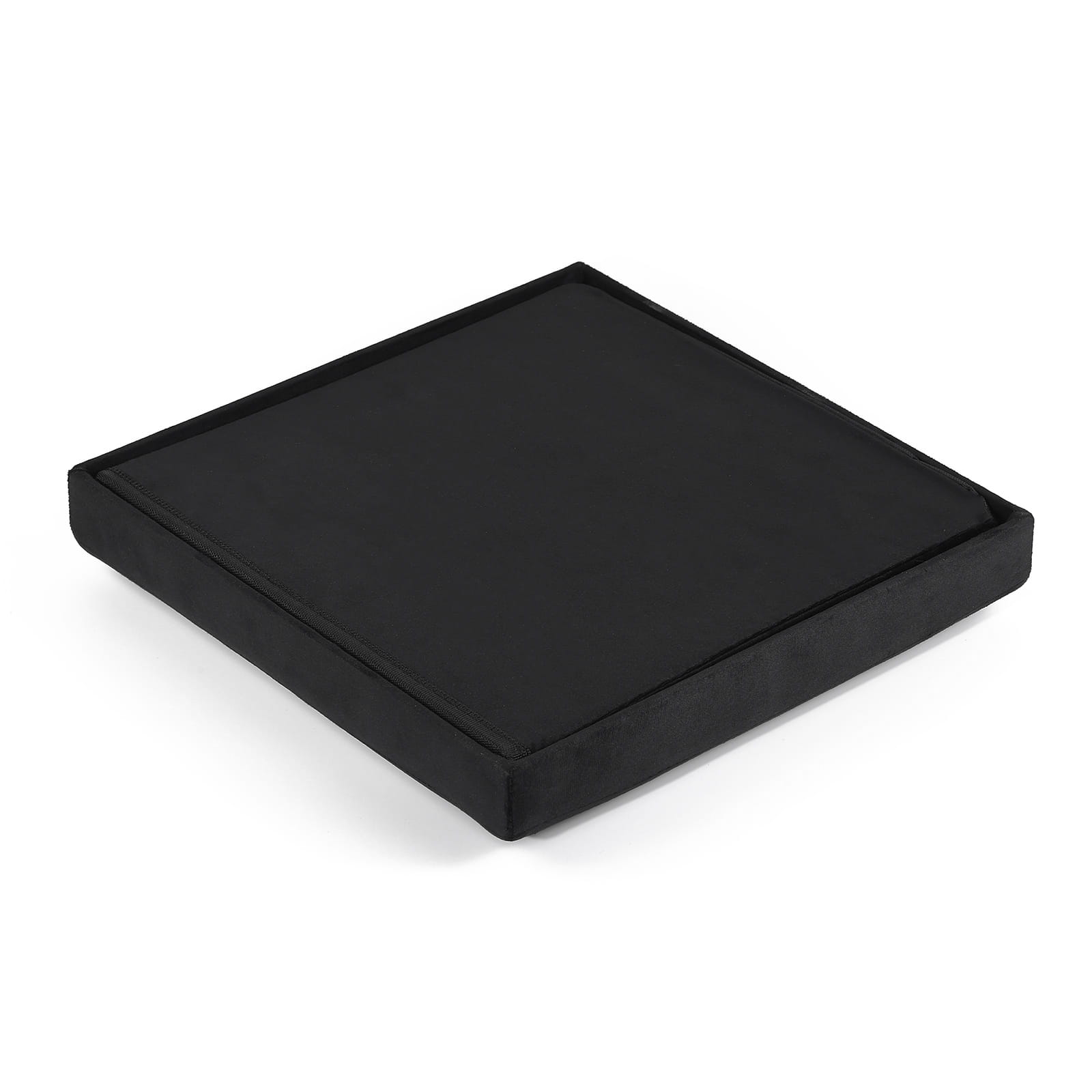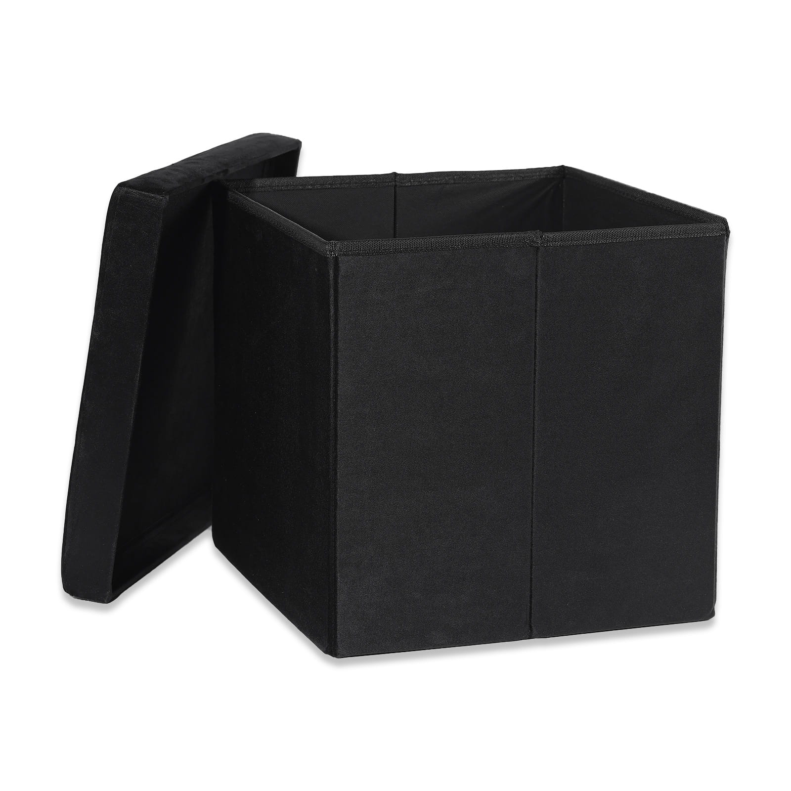 Pufa składana L z guzikami, schowek, podnóżek - 38x38x38cm aksamit czarna