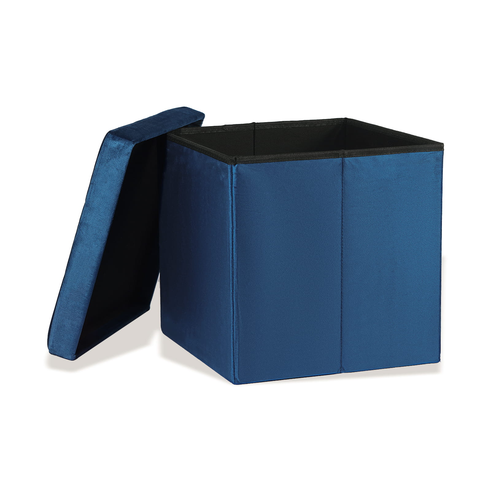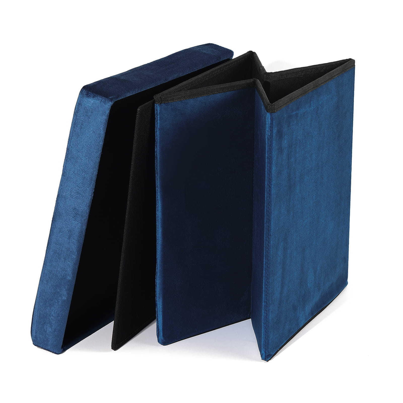 Pufa składana L z guzikami, schowek, podnóżek - 38x38x38cm aksamit granat